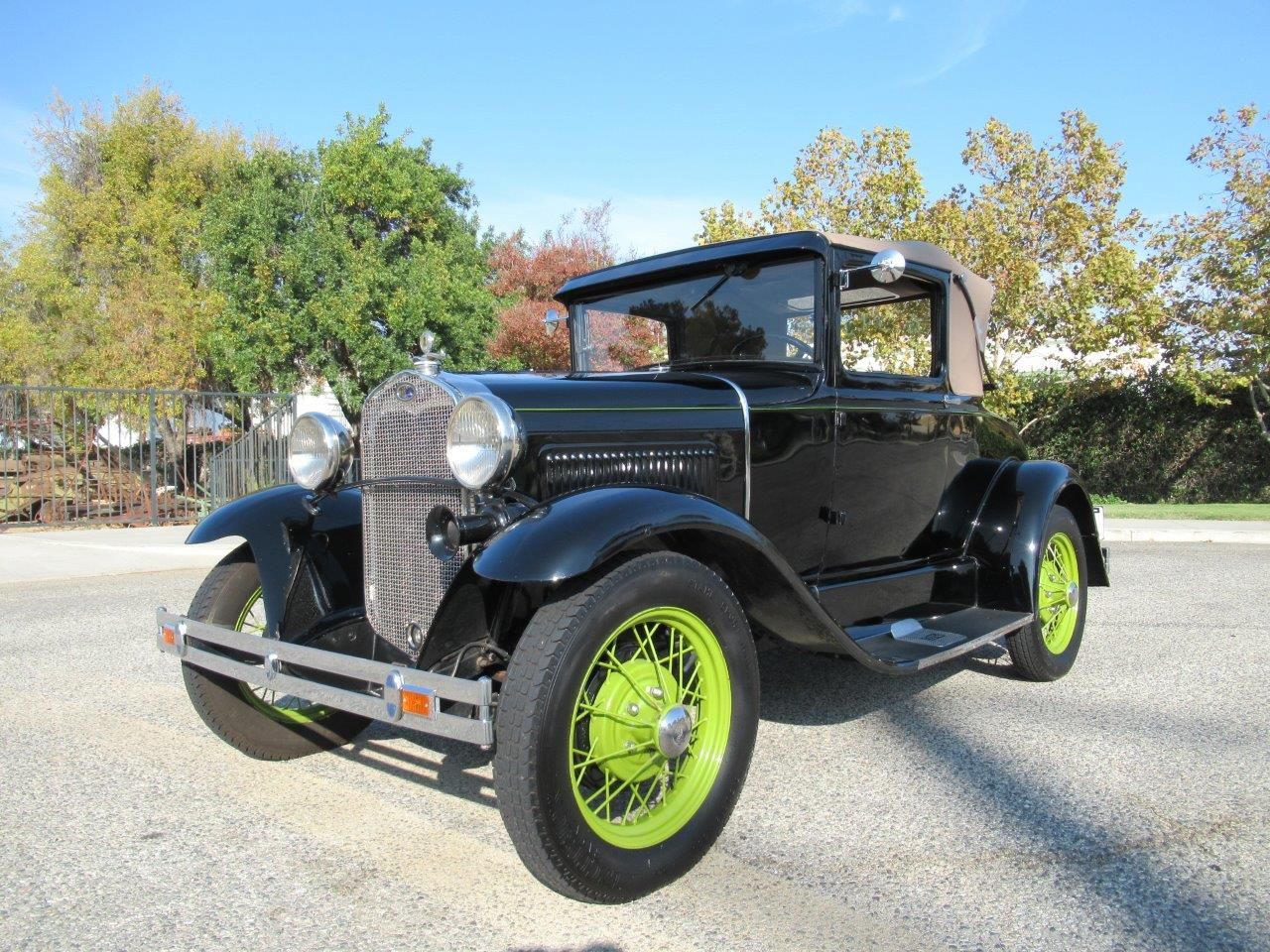![]() Click on the image for a larger picture. 1930 FORD MODEL A How about a 91 year old classic Ford! This 1930 Model A Sport Coupe is a really nice survivor with some upgrades that make it easier for driving to the local shows or parades. This one has a recently rebuilt original 3.3 Liter inline 4 cylinder flathead engine by the well respected H and H Flatheads in Montrose Ca. along with an updated 12 Volt system, electric fuel pump, Weber Carburetor, upgraded distributor, 3 speed manual gearbox with Mitchell overdrive making it more capable of freeway speeds and inclines, larger capacity radiator and upgraded 1940 Ford hydraulic brake system. The seasoned Jet black paint is accented by the Apple Green wire wheels and tan canvas Sport top with opening rear window. Almost guaranteed to be asked to be in any town parade and it’s even got a rumble seat!