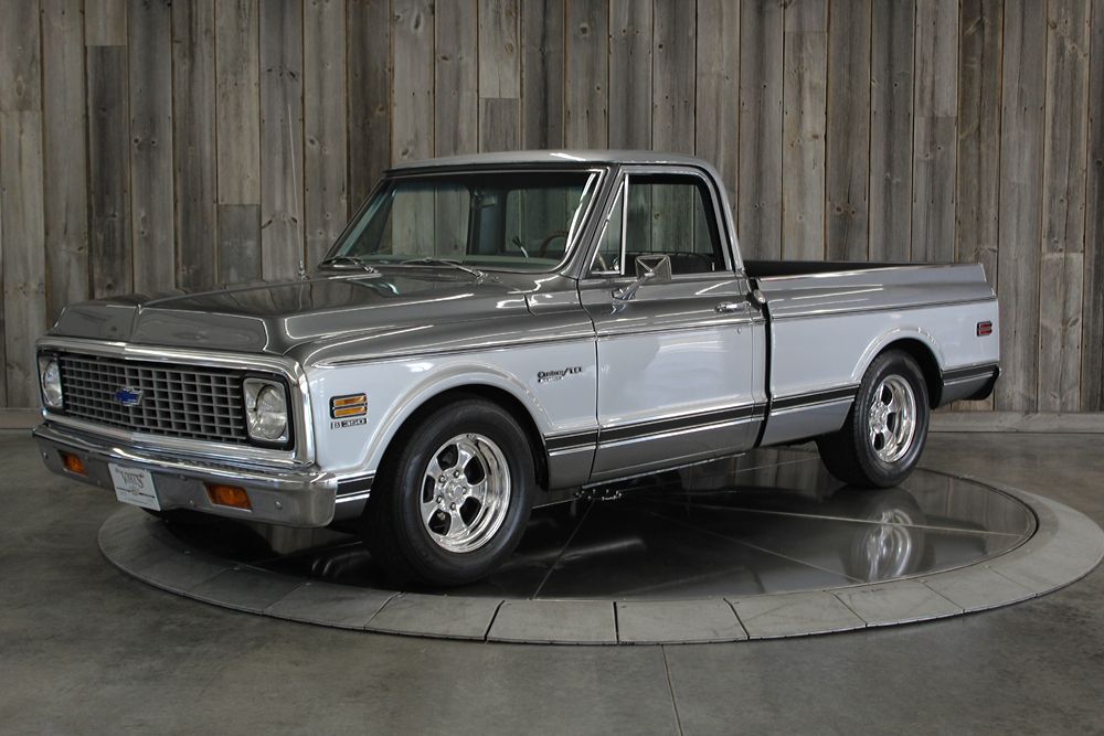 ![]() Click on the image for a larger picture. 1971 CHEVROLET C10 Silver & Gray ext with Gray vinyl interior and Bench seat. Air-conditioning works and blows cold. FULLY RESTORED. Rebuilt non-numbers matching VERY POTENT 350 V8 engine with four-barrel carburetor, Performance headers, dual exhaust, Performance aluminum intake and polished aluminum air cleaner and valve covers. Spray in bedliner black. Power steering and power front disc brakes, 3spd Automatic transmission, AutoMeter Tach w/shift light, shifts smooth and firm. Two-tone paint and full body trim. Beautiful chrome and stainless steel. Good clean glass and nice fit and finish. Straight and smooth body. Polished Aluminum wheels with radial tires, size 225/50 R17 in front and 275/50 R17‘s in back. No Spare tire. Showing 8 miles, restoration has approximately 4,000 miles. Restoration completed less than seven years ago.