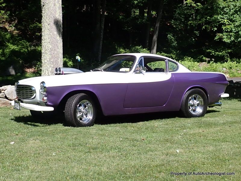 ![]() Click on the image for a larger picture. 1966 VOLVO P1800 HOT ROD This wicked 1966 Volvo P1800 Hot Rod didn't start out life as a flamethrowing, purple Chevy eater. As a matter of fact, it was quite a bit more "saintly". Originally delivered into upstate NY. It was driven regularly in that area by a young lady. One day, the car stopped running and from the sounds of it, she was told the engine was seized and so she brought it to the junk yard. Then, the person who built this monster, who had seen this car in that junk yard for years, asked the junk yard owner "How Much for that cute Volvo?" The junk man said, "Ahh, give me 400 bucks". Sold. The car was dragged home on a hook and when it was getting let down, the builder noticed the car bucking a bit as it rolled in gear. He grabbed the fan belt and pressed and turned and sure enough, the engine turned. He grabbed a battery, squirted some gas in the carbs and she started! He changed the oil, slapped a repair plate on the car and drove it for a while every now and then. before he could decide what he was going to do with the car, someone bet him he couldn't wedge a V8 into her... he won the bet. He sourced and built a Ford 302, said it was cammed a bit, headers were added along with dual quads, dual exhaust (with an AutoLoc flame thrower kit), a Ford C6 auto transmission, a four core aluminum radiator, Wilwood calipers, the original Volvo Spicer rear differential was completely rebuilt and regeared. It's running Big and Little tire combination, of BFG Radial T/A 195/70/R14's in front and BFG Radial T/A 225/70/R14's in the rear. On the interior, black velour was the fabric de-jour and the Honda seats were recovered in it. The original door cards, dash and headliner were kept. Carpet and insulation was installed to hide the fact the firewall and trans tunnel had to be modified to fit the V8 and try and help to alleviate some of the heat given off by the engine, just inches away. Before all that was completed, the car was painted in a copper tone over the original Light Blue/ Horizon Blue. Unhappy with that color, he repainted the car in the as seen pearl white over metallic purple. With the car completed, he took it out to several local shows where it was a great hit. This was 2 decades before the green Hot Wheels "Ain't No Saint" gasser P1800 arrived on the scene. After having his fun, he sold the car on to the family that now, currently owns the car. That was nearly 20 years ago. The man who bought the car thoroughly enjoyed this crazy hot rod Volvo and really drove her hard. But he kept her in very clean, solid condition. Unfortunately, he passed away recently and the family is now selling the car. The body and paint are still in very good condition. It is rust and rot free. odometer shows 81,876 miles but there are less than 10,000 miles on the car since the build. When cold, she fires up easily, pulls pretty solid oil pressure and has an awesome sound. Regrettably, he loved to fire off the flamethrowers and the use of them can damage engine internals. When the engine warms up, the oil pressure drops and a slight knock can be heard. The day I was on site was very hot and humid and when warm, the rear carb was loading up and she didn't want to drive very easily. Never mind the fact brakes work but have very little throw in the pedal and didn't feel secure, so there is no driving video. Can't say for sure what the issues are. If nothing else, she's a great base for a stock restoration and the builder still has the original engine and transmission that came out of the car. They are several hundred miles away from the car but if someone wanted to, arrangements could be made to purchase the engine and trans. Because this is a custom, hot rod build, putting a value can be difficult. The family hopes that the next owner will love the car as much as their family member did. The asking price is $11,000. Please don't hesitate to contact me with any questions, for many more photos, to set up a time to see her in person or to make an offer. Thanks for the interest.