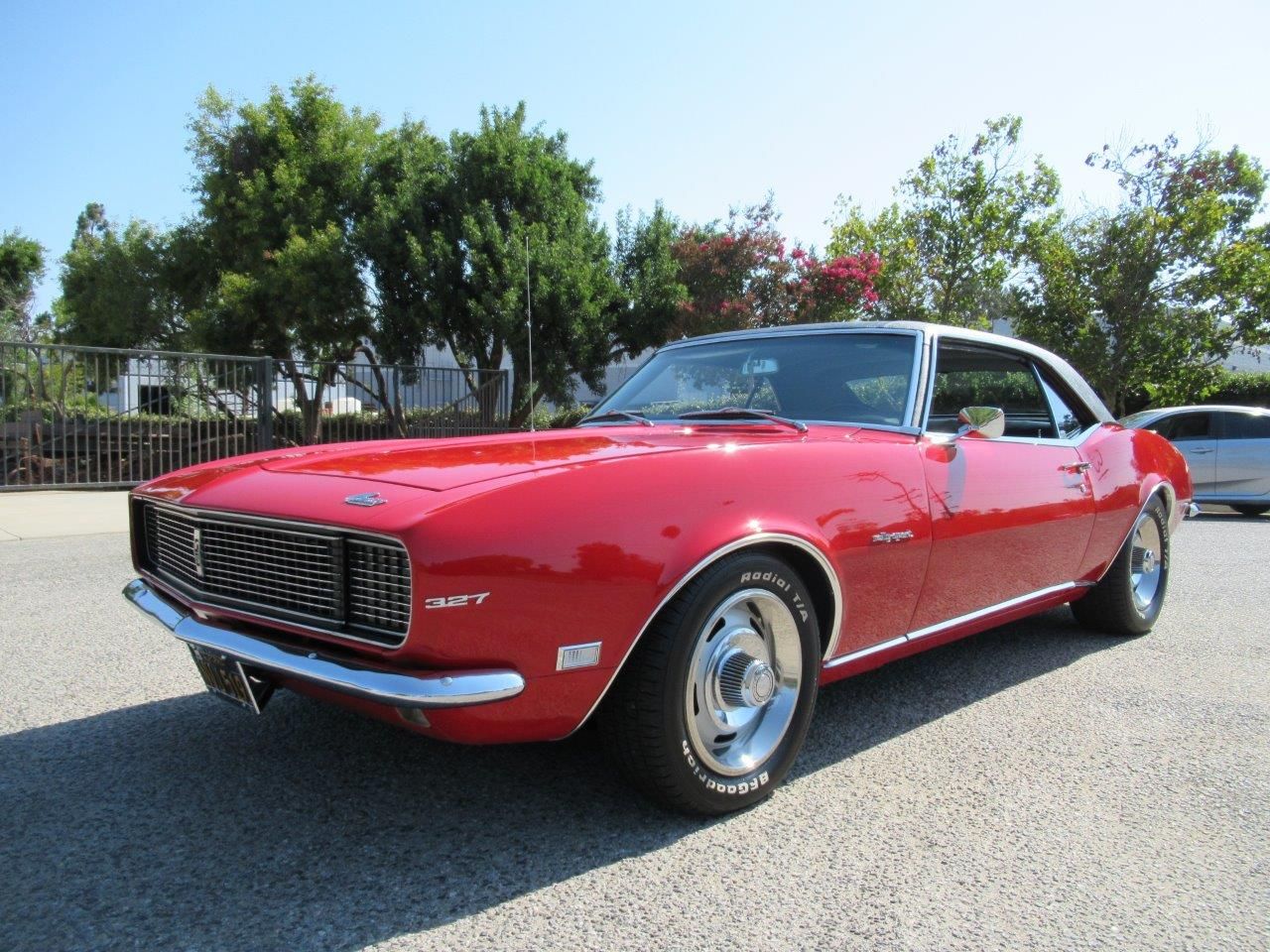 ![]() Click on the image for a larger picture. 1968 CHEVROLET CAMARO RS This rust free Los Angeles built Rally Sport Camaro is finished in beautiful Matador Red with a Black Vinyl top, Black California plates, Black bucket seats, upgraded under dash gauge package, original steering wheel, upgraded Sony AM/FM CD stereo and Hurst floor shifter. Under the hoods sits a nice running early 350 V8 with 4 barrel carburetor, power steering, power disc brakes, factory 4 speed manual transmission, 10 bolt rear differential, de arched springs for a little lower stance and a nice set of 15 inch Rally Wheels wrapped in BFG raised white letter radials. This is a great driving car to cruise and grab gears going down the highway!