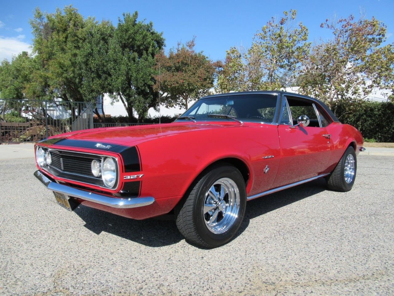 ![]() Click on the image for a larger picture. 1967 CHEVROLET CAMARO This beautiful Matador Red Camaro underwent a complete restoration years ago and still retains its original matching number rebuilt 327 V8 with upgrades such as an aluminum Edelbrock intake manifold with Edelbrock carburetor, Jet Coated headers with dual exhaust, factory working A/C with 134 Freon upgrade, power steering, upgraded radiator with electric fan, rebuilt 2 speed Powerglide transmission and 10 bolt rear differential. The interior has the original black bucket seats with center console and factory gauge package, original tachometer, deluxe door panels, upgraded under dash Pioneer CD stereo system and a nice shiny set of chrome Cragar S/S 15 inch wheels with some Cooper Cobra Radials. This Los Angeles built rust free example is ready for some summer cruising!