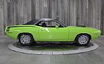 ![]() Click on the image for a larger picture. 1970 PLYMOUTH BARRACUDA RESTOMOD 511 CI Hemi engine, Original Sublime Green car, Rated at 700 HP, Aluminum heads, Dual Holley Sniper fuel injection, Powder coated Black serpentine belt system, Tremec 5-speed manual transmission, Pistol Grip shifter, Power steering, Reverse lights, Dana 60 Moser rear end, Classic stereo with Bluetooth, Shaker hood with Hemi emblems, Air conditioning, New factory-style tinted glass, Large tube headers and stainless steel exhaust, Dakota Digital Rallye gauges, tilt-telescopic steering wheel, Hemi hockey stripes, Color matched mirrors, Center console, New interior, New seatbelts, 15 inch Rallye wheels, Detailed trunk with spare and jack While there are some Hemi cars restored to exacting-original status out there, this Plymouth is not one of them. The 1970 Barracuda seen here has been set up for street and show enjoyment; it’s an OEM-appearing, big-cubic-inch ride with air conditioning and driveline changes. Coming off the assembly line in the same outrageous FJ5 Sublime Green color it now wears, this E-body is now packing a 511 CI Hemi engine built by Jeff Shmanske, a California-based Hemi specialist. Rated at 700 HP, this beast has aluminum heads, Holley Sniper fuel injection, Shaker hood scoop with Hemi emblems, large-tube headers feeding stainless steel exhaust, and a black powder-coated serpentine belt system. Behind this now resides a Tremec 5-speed manual transmission and a Dana 60-type Moser rear end with bare-metal cover. The body has a stock height and stance that looks stunning with its hot paint, matched black Hemi hockey stripes and vinyl top, new factory-style tinted glass, and color-matched mirrors. The interior is new as well, featuring a console-mounted Pistol Grip shifter, Classic stereo with Bluetooth, air conditioning, Dakota Rallye digital gauges, and fresh seat belts. Outside are hood pins, valance-exit exhaust tips, reverse lights, 15-inch Rallye wheels and a set of Cooper Cobra raised white-letter radials. Even the trunk is detailed, coming with a spare and jack. If the goal is to catch only some OEM restoration, this fish may not be the one; however, for those who want one that looks stock but is hotter than hot, this Hemi-upgraded Mopar is set up to move.
