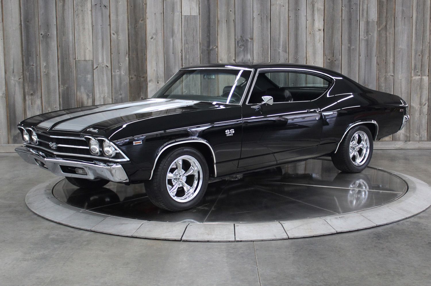 ![]() Click on the image for a larger picture. 1969 CHEVROLET CHEVELLE 1969 Chevy Chevelle RestoMod, beautifully restored less than 8 years ago. Modern AC, 396 V8 engine mated to a 3spd automatic transmission. Laser straight body painted in midnight black base coat clear coat paint with contrasting silver SS stripes that really set it off and warn there's a big block lurking under the hood. Power steering, power front disc brakes. New chrome bumpers front and back, all new trim, lights, rubber, and emblems at restoration. Also has a new black vinyl interior with bucket seats, and a clean center console with Horseshoe shifter. New vinyl on seats front and back, carpet, trim, headliner, door panels, dash pad, Tach. combo gauge cluster (fuel, battery, temp, oil press.) all work, as do the lights, wipers, and horn. Chevelle embossed floor mats, 2-spoke steering wheel, modern AM/FM stereo. Has seat belts, a trunk mat, spare tire, and tools. Features: Rebuilt Big Block 396 V8 engine, and working modern AC. All newer rubber weather strip, and hoses. Newer custom Chrome American Racing wheels with nice Firestone Radial tires 225/55R16 on front and 245/50R16 on back. It runs STRONG, drives FANTASTIC, Has BEAUTIFUL body-paint-finish, and sounds MEAN! Approximately 5500 miles since restored.