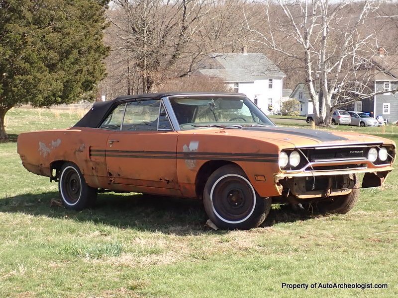 ![]() Click on the image for a larger picture. 1970 PLYMOUTH ROAD RUNNER CONVERTIBLE 1 of 6 - Yes, this 1970 Road Runner is just one of 6 Road Runner convertibles made for the Canadian market. The data tag shows the Y07 code. Only 824 1970 Road Runner Convertibles were produced in total. That makes this Lemon Twist Yellow a fairly rare bird. Unfortunately, the first owner of the car tucked her into a chicken barn sometime after having her painted in Orange Crush. There she sat for years, her fate to be covered in almost half a ton of bird and bat guano. The car was sold to a fellow in NY not long after the car was featured in the Canadian version of "Cars in Barns" - Maple Leaf Mopars. He started the arduous task of collecting the parts that would be needed to bring the cartoon character back to life. He pulled the seats and had them reupholstered, he ordered floor pans, quarter panels, frame rails, door skins, fenders, new dash pieces, new air cleaner and decals, steering wheel, brakes, mufflers, etc. Unfortunately he became ill and in 2006 sold the car to the current owner, along with ALL the parts. Very soon after obtaining this numbers matching Road Runner, the current owner hit some hard times and the car was moved to his parents barn, and then, out behind the barn. Her condition has not gotten any better, however, all the brand new parts are still wrapped in their plastic and in some case, original Mopar NOS paper. The windshield is cracked but the side glass is in good condition. The top will keep most of the elements off you but it's thin in spots and won't keep you dry if you're sitting still. Specifics of this car: Started life in Lemon Twist Yellow (code FY1), the NOG code signifies the 383 4 bbl, 335 HP engine and as mentioned, is numbers matching. P6XA denotes the Premium, Bucket seat interior in black. D32 shows she has the HD A-727 auto trans - Other options are a Canadian market block heater, 3 speed wipers, console, left side mirror, Air Grabber hood and intake, power brakes (discs in F, Drums in R), power steering, power top, hood pins, hood mounted signals, all the stripes (hood, road runner longitude dust stripe and the trunk stripe) AM/8 Track radio. After over 15 years of ownership and little to no progress aside from a few more parts being purchased, he has decided it's time to let her go to someone with the time and skills to get her done. She is VERY rusty, but she does turn over (and just before I started videotaping she did start and idle for a minute or so). The odometer shows 01829, so chances are that is a rolled over number of 101,829 miles. The owner also has a second B5 blue Road Runner convertible (in primer) with a blue bucket seat interior and a 440 Six Pack engine (all cleaned and prepped for reassembly) that can be combined with this Road Runner as a package deal. See the posting for that car for more details on it or just ask me for the link. The asking price on this 1 of 6 Road Runner convertible, with over $20,000 worth of parts is just $25,000 or best offer. Any questions, for many more photos and video, to schedule a time to see in person or to make an offer, please don't hesitate to contact me. Thanks for the interest.