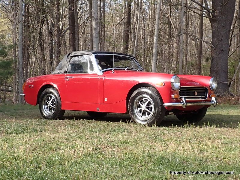 ![]() Click on the image for a larger picture. 1973 MG MIDGET CONVERTIBLE 1973 MG Midget This is just an awesomely fun driver. It started in a bar - the current owner was talking about buying a Bugeye Sprite and his buddy, who was sipping his second bourbon, said "Why not buy a Midget with the round wheel wells, they're a lot less expensive than a bugeye, and then swap on the Bugeye nose? I'll help you get it all done" So, the current owner found this Midget in absolutely wonderful condition, brought her home and promptly called his buddy to help - crickets... Three years later, he's driven her around a bit and ended up buying a real Bugeye Sprite and as he's thinning out a small collection, he's decided it's time to let her go. She is totally rust free. The last owner had her repainted but didn't spring for the extra few bucks to paint the door jambs and under the hood. The 1275 engine is believed to be original to the car, the odometer shows 54500 miles and she starts and runs great. The current owner thinks the engine was rebuilt when the car was painted but can't confirm. As she's been sitting for a couple years and only started and driven sparingly, the carbs will need a little tune and she'd definitely benefit from some new gas with some Lucas magic additive. Everything about this car is good. Solid body, nice, even paint, top is like new, seats are pretty firm and have no tears, the padded dash is also tear/crack free. The tires are a "Metric Radial" in a 13" size and are in great condition, wrapped around the stock Rostyle wheel. The air cleaner and twin SU carbs funnel the fuel into the 4 cylinder under an aluminum valve cover and out through a straight pipe exhaust and a sport muffler. Disc brakes up front and drums out back bring her to a halt. Nothing power on this little car, that you put on and wear more than get into, especially if you're over 5'10", once in though, there is plenty of leg room. The roll up windows work as they should, the top folds down easily, you can do it all sitting in the driver seat. The lights all work, wipers, heat/fab, even the horn. There are couple of very small foibles: the aforementioned unpainted jambs, the driver carpet is thinning, there are a couple of very small chips in the paint, the rear axle is seeping and she'll need a little tuning, but she's rust free and turn key. Get in her and drive. Old saying - Much more fun to drive a slow car fast, than a fast car slow. Being so low to the ground, with no power steering or power brakes means you feel everything that much more and scooting around on back roads at 50 MPH simply puts a smile on your face. She's offered at a very market correct $7500. Any questions, for many more photos and video, to schedule a time to see her or to make an offer, please don't hesitate to contact me. Thank you for the interest.