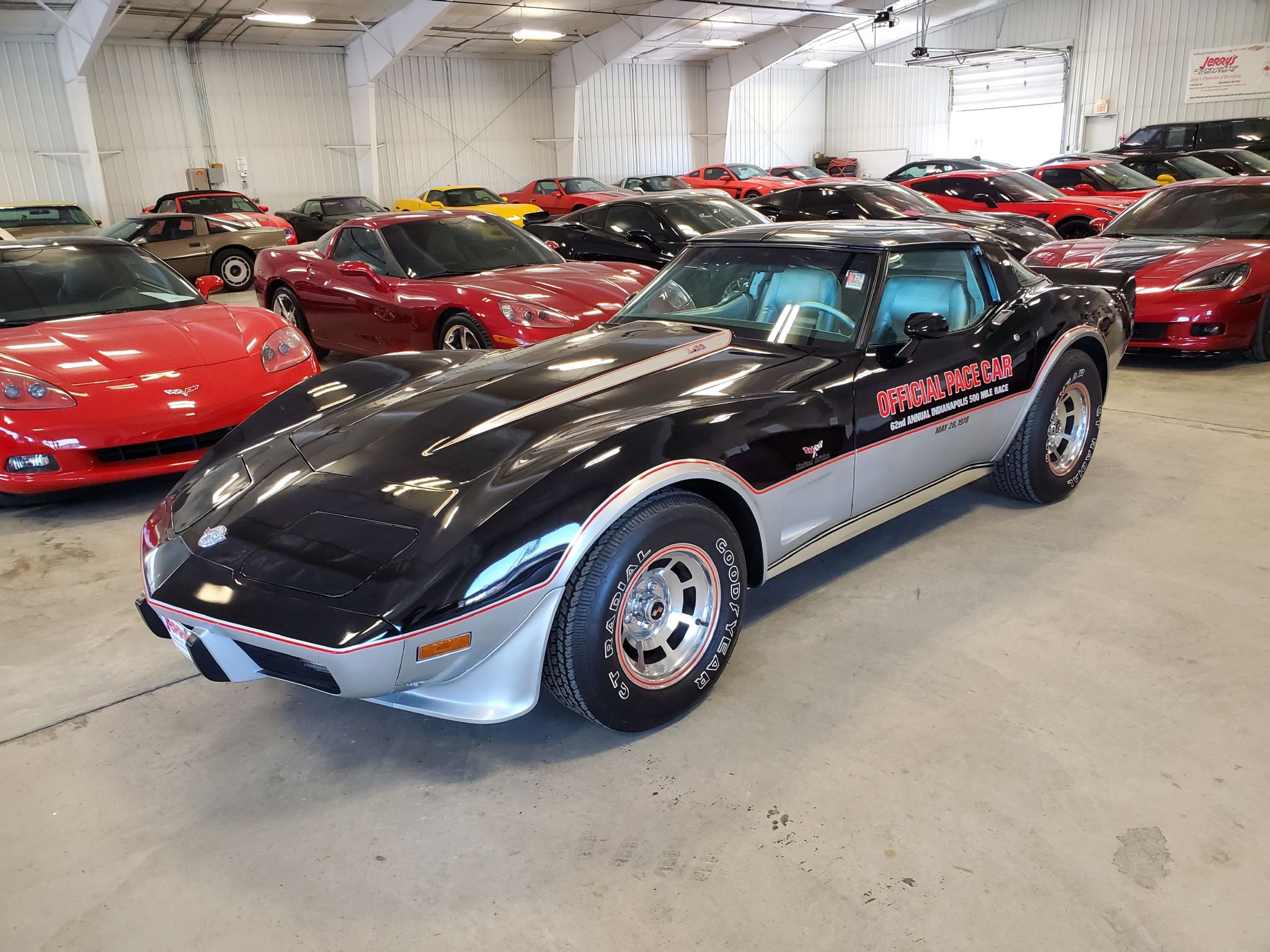 ![]() Click on the image for a larger picture. 1978 CHEVROLET CORVETTE INDY PACE CAR 1978 Corvette Indy Pace Car Limited Edition T-top. Special Edition Car To Commemorate 25 Years Of Corvette. Two Tone Black & Silver/ Smoke Silver Leather Seats. 220HP L82, Automatic, Air Conditioning, P/ Steering, Tilt & Telescopic Steering Wheel, Cruise Control, P/ Windows, P/ Locks, Rear Defogger, AM/ FM Stereo w/ CB, Dual Rear Speakers, P/ Antenna, Convenience Group, Dual Sport Mirrors, Glass T-Tops, Front & Rear Spoilers, Polished Aluminum Wheels w/ Red Stripes. Factory Original Numbers Matching Car. Local Trade. Only 2,200 Original Miles. Our Price: $39,997. Stock #AC02344 Jerry’s Chevrolet is proud to be the official sponsor of the Sioux Falls Corvette Club and the 52nd Anniversary Black Hills Corvette Classic. Come join us for Corvette Week July 12th-15th 2023. www.blackhillscorvetteclassic.com With over 50 in stock - We have the largest selection of Corvettes, late model performance cars and collectible cars in the region! Stop by to visit our all new nearly 11,000 sq. ft. Corvette and Collector Car Showroom located in Beresford, SD. Please contact Barry Konken at (605) 957-3038 for more information about these outstanding cars. Dreams Delivered Daily!