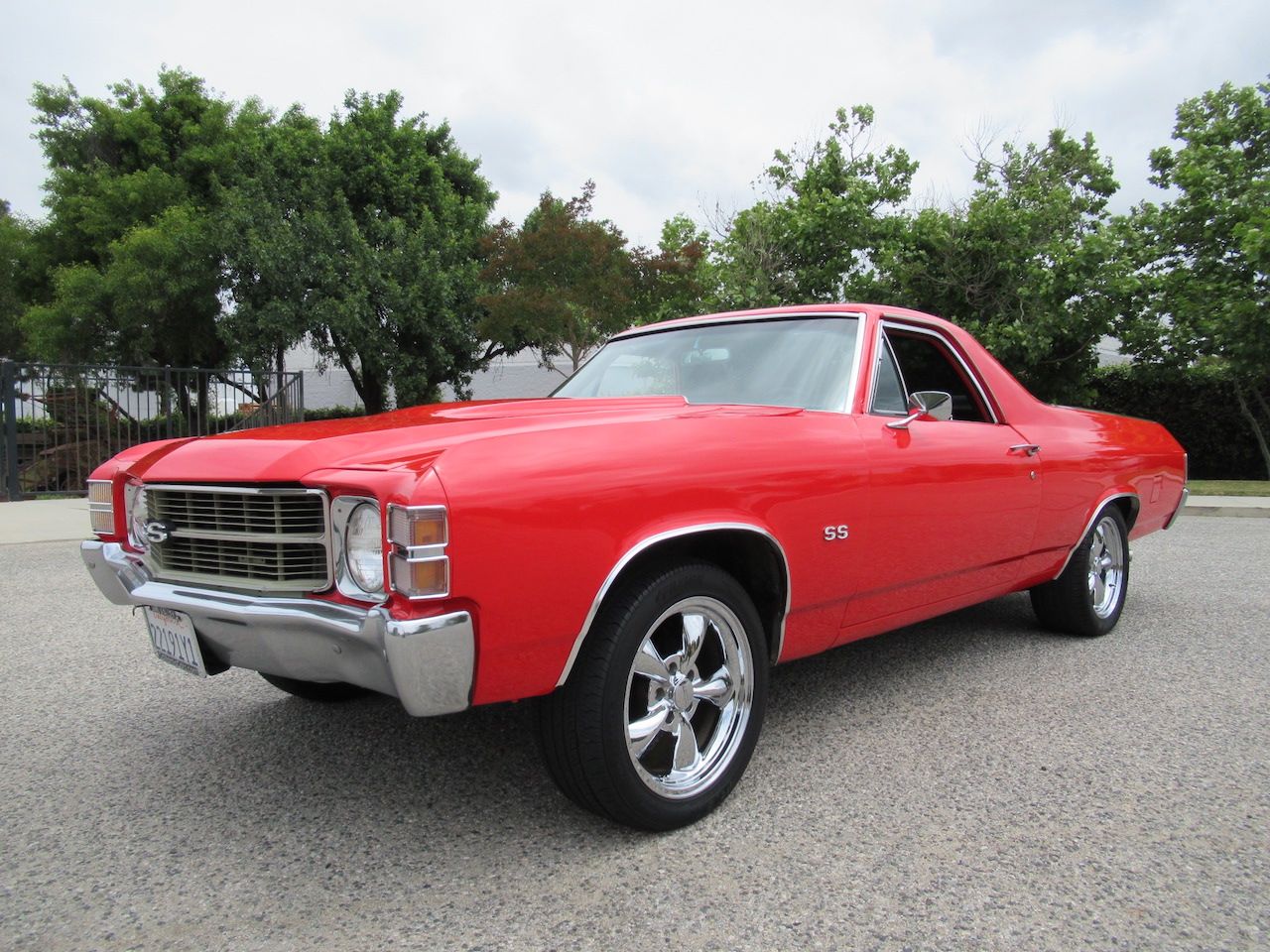 ![]() Click on the image for a larger picture. 1971 CHEVROLET EL CAMINO SS A great looking Super Sport hauler! Finished in Cranberry Red with Black vinyl interior and loaded with options. Under the Cowl Induction hood sits a 350 V8 crate motor with polished front runner system, aluminum radiator with electric fans, HEI Ignition, Patriot Headers and dual exhaust with Flowmaster mufflers, 700R4 automatic overdrive transmission for those highway speeds, 12 Bolt differential, rear air shocks, power steering, power disc brakes and upgraded A/C with polished Compressor and R134 Freon upgrade. More options include spray in bed liner, Custom Auto Sound AM/FM Stereo, tilt steering column, 3 spoke custom steering wheel and a nice set of 17? Chrome 5 spoke custom wheels. Drive it daily to work or save it for the weekend cruise nights!