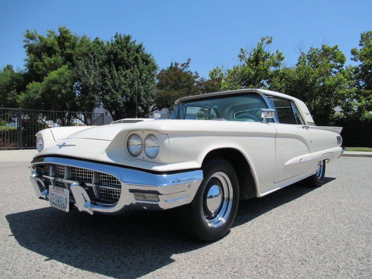 ![]() Click on the image for a larger picture. 1960 FORD THUNDERBIRD Known as the Squarebird these retro looking Thunderbirds were very popular and definitely cool! This one is finished in the correct Corinthian White paint color with beautiful Turquoise vinyl interior, bucket seats, wrap around stainless interior trim, factory AM Radio and center console. Under the hood sits the original fresh rebuilt 352 V8 rated at 300 Horsepower, 4 barrel carburetor, power steering, power brakes, dual exhaust, rebuilt Cruise-O-Matic automatic transmission, 3.10 ratio rear differential and rolling on a nice set of 15 inch Steel Chrome and Black Moonies with radial tires for a smooth ride. With low miles on most of the mechanicals this T-Bird should give you plenty of enjoyment for years to come!