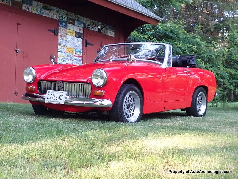 ![]() Click on the image for a larger picture. 1967 MG MIDGET ROADSTER 1967 Modified MG Midget This little MG Midget was purchased nearly 25 years ago by a friend of the current owner's father. Soon after buying the car, which was literally in boxes, he fell ill and was not able to continue work on the project. The body had been stripped and painted but nothing else had happened. The car was shifted up into the rafters of the garage where she sat for some 15 years. 10 years ago the current owner got a ring from his dad's buddy asking if he'd be interested in buying her, getting her running so he could see her finished before his health made it impossible. So, he purchased her, took a couple of weeks to get the body and everything else out of the garage and back to his own garage where he dug in. The long story short is that the engine was found to be in need a rebuild so he went in deep and built the little 1275 series 4 cylinder into a mini monster. Shaved head, high compression pistons, Weber side draft, header, electronic ignition/distributor, high output generator, stainless exhaust that runs straight out to a Thrush glass pack and dual outlet Ansi style tip. The car has 39,000 miles on the odometer but only a couple thousand since the rebuild, about 8 years ago. - and yes, Dad's buddy got to see her rip down the street. Other bits that were replaced during the rebuild: all new brakes, bushings, bearings, wiring harness, master brake and clutch cylinders, tube shock replaced lever shock kits (F&R), new springs front and rear, Heim joint panhard rod in back, all hoses were replaced (engine, brake, etc), new A arms, rear axle internals rebuilt with new axle shafts... Pretty much all the mechanicals were replaced or rebuilt. The interior was in overall very good condition and remains that way today with some wear and tear items such as the door cards, carpeting showing their age. A new Pioneer stereo system was installed and 2 12v power outlets behind the seats along with a set of 6x9 Kenwood speakers. The interior and boot are lined with Kilmat insulation/sound deadener. There is a brand new, UK sourced vinyl top and a new wooden steering wheel. The body is in very good condition with no rust/rot in the floors, rails, sills, etc. There is one tiny hole in the right front lowest front section of the fender (under the bumper). The chrome is all in very good condition with little or no pitting. There a couple of very small chips in the paint, but the lipstick red paint shines very nicely and looks great combined with the aluminum "snow flake" style wheels, wrapped in Nexen 175/60R13 radials. She starts right up, with no hesitation and idles along like a small race car. The tach is currently inoperable but the owner is tracing down that issue, oil pressure is awesome, sitting over 50 at idle and up to 75+ when driving. She sounds great and pulls out probably 50% more HP/Torque than stock. Jump on the gas and she accelerates immediately. She does tend to pull a bit to the right on hard acceleration and I'm not sure if that has to do with the panhard rod or steering or neither, maybe just the torque. The owner mentioned that she may sometimes pop out of second, however, in my time driving her, she did not. She shifts, stops and steers well. There are several boxes of spare parts too. In summary - This is a rip-snorting Midget in very good condition that could use some buttoning up here and there to be just one step better than she currently sits. She is totally turn key and ready to go and enjoy, be it out on some country roads or at the local slalom/autoX course. The asking price is $11,000 Any questions, for many more photos and videos, to schedule a time to see her in person or to make an offer, please don't hesitate to contact me. Thank you for the interest.