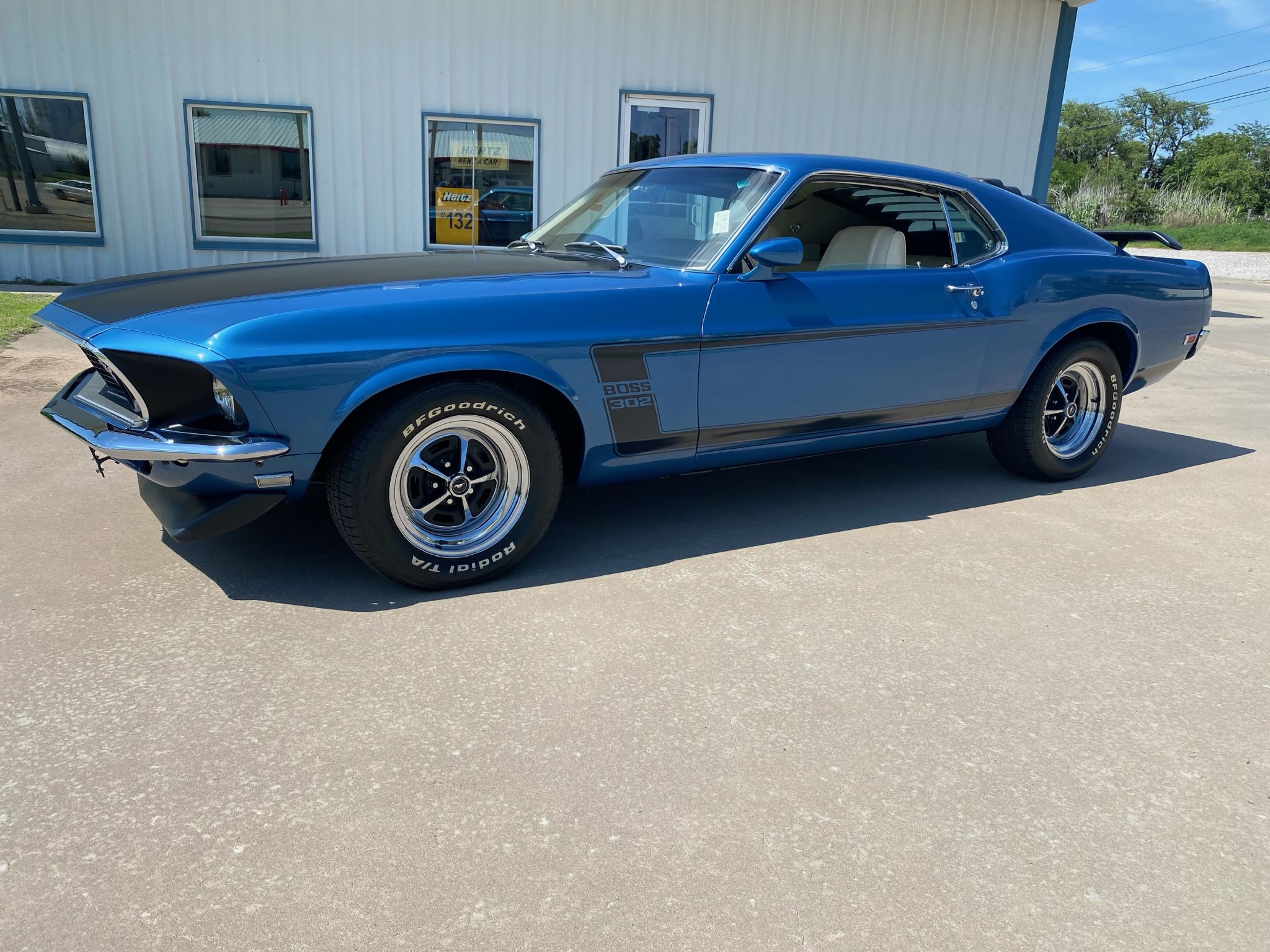 ![]() Click on the image for a larger picture. 1969 FORD MUSTANG BOSS 302 Rare 1969 Ford Mustang Boss 302-1628 made and very few with this paint and interior combination. It’s a beautiful Acapulco Blue with White Deluxe interior. Matching numbers and tons of options to include: Close ratio 4 speed transmission, 3:91 Traction Lok rear end, White deluxe interior, tilt wheel, fold down rear seat, console, front and rear spoilers, rear window louvers, chrome Magnum wheels, power steering, power disc brakes, tinted glass and AM radio. Boss 302 has the rev limiter,smog emission system, correct air cleaner with snorkel and heat shield, exhaust manifolds, carb and distributor. Amazing rotisserie restoration on a highly optioned 69’ Boss 302. No disappointments.
