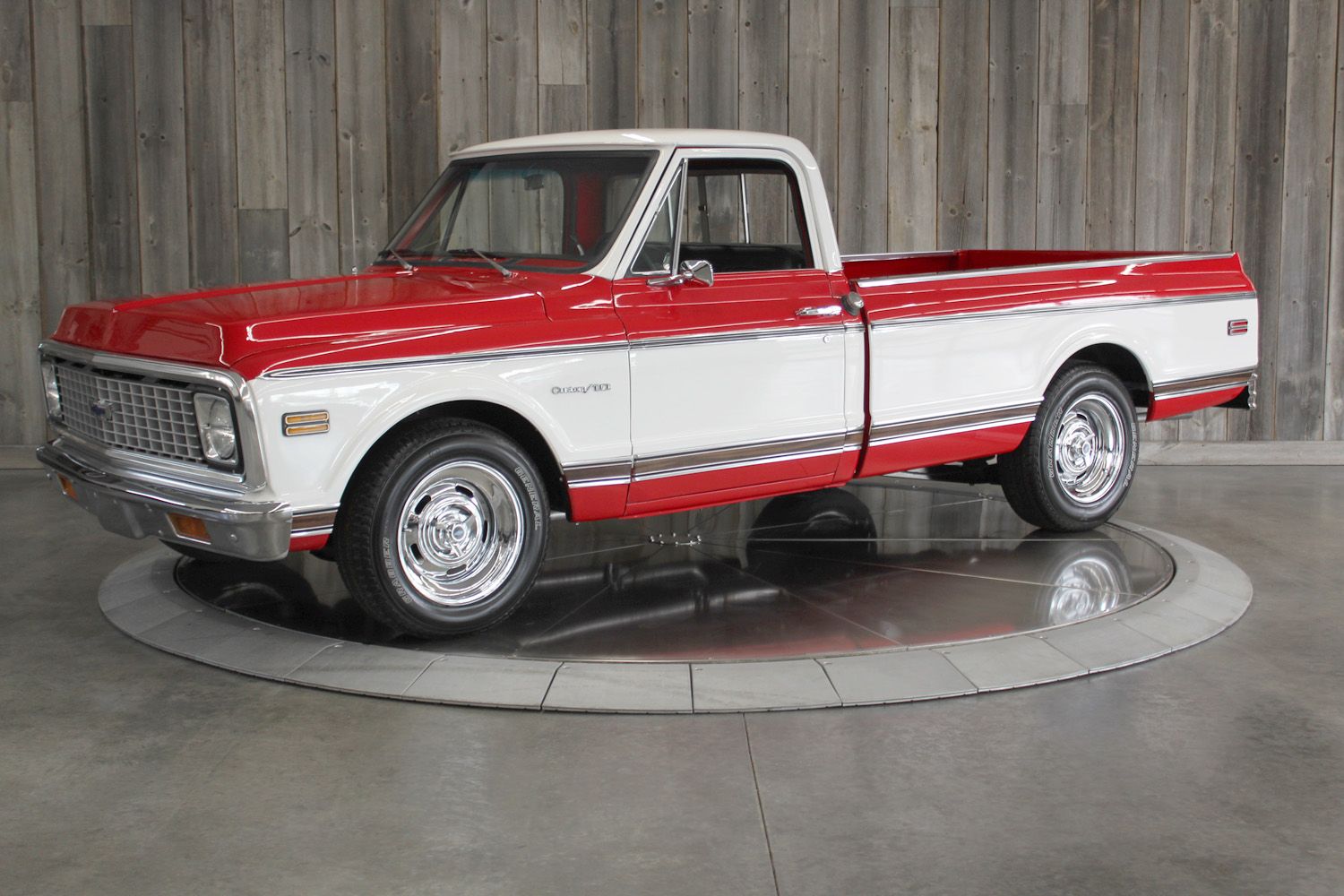 ![]() Click on the image for a larger picture. 1972 CHEVROLET C10 1972 CHEVY C-10 – 1972 Chevy C10 Pickup. Frame Off Restored Beautiful two-tone Red and White Exterior with Black vinyl seat and red trim interior. Body - Rust free - truck Paint Base Coat Clear Coat. Chrome - All new bumpers and trim. Frame and front-end parts – freshly painted. Engine – rebuilt 350 – bored 40 over, Crank 10-10. All new parts – fuel pump, water pump, starter, alternator, regulator, plugs and plug wires, distributor, temp switch, thermostat, belts, hoses, heater core, Edelbrock carb. Manifold, Valve covers – air cleaner. Frame and front-end parts – painted. Transmission – Rebuilt 700R4 with overdrive. Drive Shaft – All new parts and balanced with new U-joints. Wiring – new. Tires – 4 new General raised white letters. Wheels – 4 New Chrome Rally 17" wheels with spinner center caps. 4 new Shocks. Brakes – New front calipers, pads, hoses, and lines, rear drums and wheel cylinders, hoses, and lines – new master cylinder – new front rotors and rear drums machined. Exhaust – New dual exhaust system. Radio – New radio, antenna, and speaker. Battery – New battery and cables. FRONT END – New coil springs, tie rods, ball joints, and “A” frame bushings and arms kit – new trailing arms and rear springs. New Floor – Doors, front fenders, cab mounting kit, new tailgate, all new side moldings, front and rear bumpers, grill, inner fender walls. New lenses - headlights, all rubber moldings, gas-sending unit. New emergency brake cable – new side marker lights, windshield, new door glass on both sides, New - seat covers, door panels, carpet, cigar lighter, instrument cluster, outside and inside mirrors, floor mats, thick rubber bed mat. New - Metal wiper arms with new wiper blades. Beautiful glass, chrome, and trim. Stainless steel bed caps are new. This is a great truck, new and ready to enjoy only has 43 miles since its total restoration was completed. Drives great and sounds perfect.