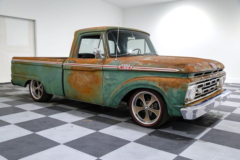 ![]() Click on the image for a larger picture. 1964 FORD F100 Give us a call at 903-891-0000 with any questions! Financing and shipping available! Roll down the windows, turn up the Retrosound radio, and feel the wind as you cruise in a piece of Americana reimagined for today's hot rod enthusiast. Here's a gem straight out of 1964: a Ford F100 that combines a dash of nostalgia with a heavy dose of modern muscle. Beneath the hood of this classic truck rumbles a 351 Windsor V8 " a powertrain that's both iconic and beastly. Mated to an AOD Automatic Overdrive, you're not just getting a truck; you're getting a piece of machinery tuned for the modern roads but with a soul that's decidedly vintage. But let's take a moment to appreciate that patina finish. It's not just a color; it's a testament to the tales this truck has witnessed over the decades. From the American flag wood bed " a symbol of its heritage, to the raised custom bed floor that gives it that unique flair, this truck is drenched in character. Slide into the interior, and you'll immediately notice those 1965 Ford Mustang bucket seats, a nod to another iconic family member. The seating is tastefully done in vinyl, striking a perfect balance between comfort and style. Not to forget the custom center console that houses a hidden Retrosound sub, ensuring your tunes play as good as this beauty looks. This Ford hasn't forgotten its roots but embraces the future with some impressive modifications. Talking performance, the Edelbrock aluminum intake and BDS shorty headers ensure the truck has the grunt to match its growl, provided by that deep-toned dual exhaust. On the handling front, the drop I-beam front suspension and C-notched rear promise a smooth ride, and when it's time to hit the brakes, those 4-wheel Wilwood disc brakes won't let you down. The details on this ride are meticulously curated: from the Redline tires wrapped around those chic Ridler wheels to the Classic Instruments gauges that keep you informed in style. With a cooling system boasting an aluminum radiator coupled with dual electric fans, this beast promises to keep its cool even when you're pushing her. In essence, this 1964 Ford F100 is more than just a vehicle; it's a journey through time, blending the golden era of motoring with today's tech and performance enhancements. Whether you're a classic truck aficionado or someone who respects a well-done resto-mod, this F100 is bound to tug at your heartstrings. So, gear up and get ready to turn heads wherever you roll. Because, in this Ford, every journey is bound to feel like a trip down memory lane. VEHICLE OPTIONS: - Power Steering Conversion - Power Brakes - Dual Exhaust - Wilwood Master Cylinder - RIDLER WHEELS - Retrosound Sub under console - RetroSound Aftermarket Radio - Redline Tires - Edelbrock Aluminum Intake - Drop I Beam front suspension - Custom Raised Bed Floor - Custom Center Console - Custom American Flag Bed Wood - Classic Instruments Gauges - C Notched Rear - BDS Shorty Headers - American Autowire Classic Update Harness - Aluminum Radiator with Dual Electric Fans - All new fuel and brake lines - 8 inch Speakers Under Seat - 4 Wheel Wilwood Disc Brakes - 1965 Ford Mustang Bucket Seats - 1965 Falcon Console Base OPERATIONAL ASSESSMENT: Functioning: Yes/No No - Heater Yes - Brake Lights Yes - Radio Yes - Tail Lights Yes - Oil Pressure Gauge Yes - Wipers No - Horn Yes - Temperature Gauge Yes - Fuel Gauge Yes - Turn Signals Yes - Runs Yes - Tachometer Yes - Headlights Yes - Speedometer