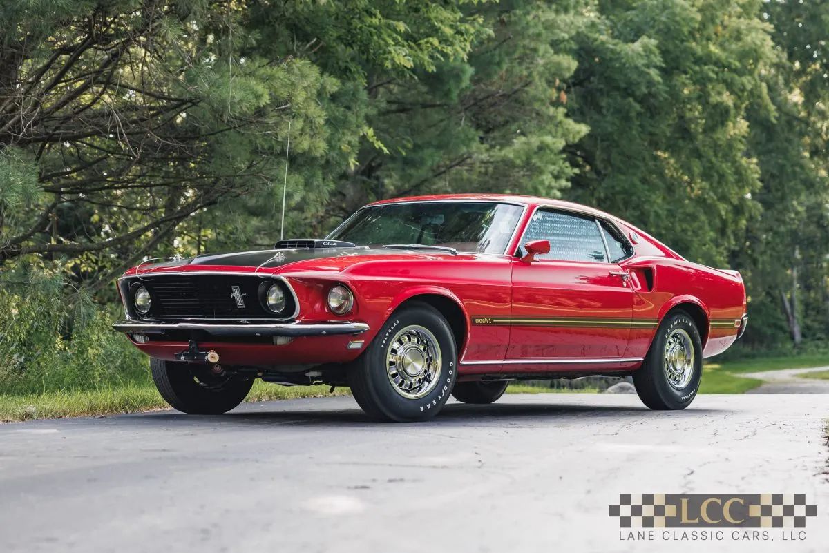 ![]() Click on the image for a larger picture. 1969 FORD MUSTANG MACH I 428 COBRA JET - SOLD! SOLD! Senior National First Prize AACA 2018 winner. Grand National Winner, 2019. Concourse restoration. 428 V8 4V Cobra Jet with Ram Air, 4 speed manual transmission, Candy Apple Red paint, Red Mach I vinyl interior, quality investment collector, wooden Shelby-style striped shift knob, Red with Black and Yellow Mach 1 side striping, Black accented Ram Air hood with hood pins, Red bucket seat interior with wood accents, polished styled steel-style wheels with matching center caps. Lane Classic Cars is now proud to be offering this legendary 1969 Ford Mustang Mach 1 428 Cobra Jet. A classic American muscle car that has stood the test of time and continues to captivate car enthusiasts worldwide. This iconic Mustang is not only a concourse restoration AACA winner, but offers a unique blend of power, style, and nostalgia, making it an excellent investment and a dream ride for any vintage car collector. Raw power: The heart of the 1969 Mustang Mach 1 is its mighty 428 Cobra Jet V8 engine. Renowned for its impressive horsepower and torque, this engine delivers exhilarating performance and an adrenaline-pumping driving experience. Timeless design: The ’69 Mustang Mach 1’s design is a true masterpiece. With its aggressive front grille, signature hood scoop, and distinctive side stripes. This Mach 1 instills all the vintage charm while retaining a sporty and muscular appearance that turns heads wherever it goes. Rarity and authenticity: A concourse-quality 1969 Ford Mustang Mach 1 428 Cobra Jet is not easy to come by. These cars were produced in limited numbers, and finding one in impeccable condition adds to its allure and value. Owning a vehicle with such rich heritage and historical significance brings a sense of pride to any car enthusiast. Investment potential: Classic cars have consistently proven to be a valuable investment over time, and the 1969 Mustang Mach 1 is no exception. Its rarity, cultural significance, and continued popularity in the collector’s market mean that its value is likely to appreciate in the future. Driving experience: Driving a 1969 Mustang Mach 1 is a trip back in time, providing an authentic and immersive experience that connects you with the golden era of American muscle cars. Feel the power at your fingertips and relish the sensation of commanding the road in a true automotive icon. Heritage and legacy: The Mustang nameplate itself carries a rich history, representing the spirit of American performance and innovation. The 1969 Mustang Mach 1 with the 428 Cobra Jet engine is a shining example of Ford’s dedication to creating unforgettable driving experiences. Owning a concourse-quality 1969 Ford Mustang Mach 1 428 Cobra Jet allows you to become a custodian of automotive history and be part of a passionate community of classic car enthusiasts. Its beauty, power, and legacy make it more than just a car; it’s a cherished piece of American culture. Don’t miss the opportunity to own a piece of automotive history and create memories that will last a lifetime. Take the wheel of this vintage masterpiece, and experience the thrill of driving a true classic – the 1969 Ford Mustang Mach 1 428 Cobra Jet.
