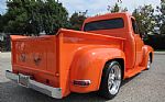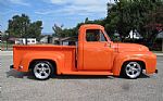 ![]() Click on the image for a larger picture. 1954 FORD F-100 It is hard to decide where to start with this beautiful Truck! First off the previous owner bought this truck at the age of 16, 48 years ago. It still has the old Black Commercial California license plates on it and it shows that it has always been a cherished prize possession. The high end paint is finished in Bright Tangerine with subtle Ghost Flames along with some quality custom pin striping and air brushed skulls for a really cool look. Other custom external modifications include a 1956 Grill, shaved door handles with remote poppers, No Limit reverse tilt hood, relocated fuel tank under the stunning wood bed floor with stainless steel inserts, LED ground effects lighting, Classic Mercury taillights, nice chrome bumpers and staggered 18 inch polished Centerline wheels all the way around. Under the hood is equally impressive with a smoothed and custom painted firewall and inner fenders which cradles a detailed and healthy small block Chevy V8 with polished ball milled valve covers and air cleaner, polished intake manifold, Edelbrock carburetor, HEI ignition, polished aluminum radiator with Electric fan, Shorty headers with performance dual exhaust, Camaro front clip, disc brakes, power steering, all new modern wiring, 700R4 automatic overdrive transmission and 10 Bolt Chevy rear differential. The power Cadillac bucket seats are wrapped in Tan leather with a center console for storage, custom smoothed and flame painted dash to match the exterior, Flaming River tilt steering column with Billet flame steering wheel, power tinted windows and Pioneer AM/FM Stereo. Also included is a partially installed Vintage A/C system which could be finished for a minimal amount and add value to this already special truck!