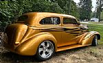![]() Click on the image for a larger picture. 1937 CHEVROLET MASTER DELUXE 2DR. SEDAN This 1937 Chevrolet Sedan street rod was acquired by the owner in 1997 and subsequently refurbished and modified. Work consisted of chopping the top, modifying the hood, rear fenders, and side panels, adding a power-operated sunroof, repainting the body, and installing a Progressive Automotive fabricated steel chassis, a front air-ride suspension system, and a GM Performance crate 454ci V8 linked with a 700R4 four-speed automatic transmission and a Currie Enterprises 9? rear end. The car is finished in Sundance Gold with airbrushed black flames over a custom Fawn Gold and Cream leather interior with wood grain and black leather trim, and features include Arizona Speed & Marine electronic fuel injection, Vintage Air climate-control and Front Runner accessory systems, power steering, power front Wilwood disc brakes, 18? and 20? Intro Twisted Matrix wheels, Dakota Digital instrumentation, power-adjustable front bucket seats, and an Alpine CD stereo linked with two Alpine amplifiers and JL Audio subwoofers. This Chevrolet street rod is now offered on dealer consignment with a 2006 issue of Street Rod Builder magazine featuring the car, build invoices, parts instruction manuals, award jackets, and a clean New Jersey title listing the car as a 1937 Chevrolet. The body was repainted in Sundance Gold with black flames accented by airbrushed shadows during the refurbishment. Features include a chopped roof, a one-piece hood with side louvers, a Jim Wrench grille, an Audi-sourced power-operated sunroof, extended side panels, Rodtronics electric door and trunk poppers, shaved drip rails, molded fender-mounted headlights and taillights, and body-color mirrors and running boards. There is a paint chip on the right rear fender. The 18? and 20? Intro Twisted Matrix wheels are mounted with BF Goodrich g-Force T/A KDW tires measuring 225/45 up front and 265/50 out back. The Progressive Automotive fabricated steel chassis features tubular control arms, power rack-and-pinion steering, and an Air Ride Technologies front air suspension system. Braking is handled by power-assisted Wilwood front discs and Ford-style rear drums. The cabin features power-adjustable front bucket seats and a custom rear bench trimmed in Fawn Gold leather upholstery, which extends to the custom center console, dashboard, and door and rear panels. The interior is accented with wood grain and black leather trim, and features include a Bitchin’ Products dashboard, black-finished billet hardware, a concealed Air Ride Technologies system controller, Vintage Air climate control, a Painless wiring harness, modular door contacts, power windows and mirrors, and black anodized aluminum pedals. An Alpine Bluetooth-capable stereo is linked with mid-range speakers, two tweeters, and trunk-mounted 1200-watt Alpine amplifiers and JL Audio 8? subwoofers. There are scratches in the wood trim by the left door handle. The Lecarra steering wheel is mounted to a tilting column and sits ahead of a center-mounted Dakota Digital instrumentation display. The digital odometer shows 6k miles. The GM Performance crate 454ci V8 was installed during the build and features Arizona Speed & Marine electronic fuel injection, a chrome Vintage Air front runner system, chrome dress-up components, electronic ignition, Lokar throttle linkage, a finned intake manifold and valve covers, and tubular exhaust headers. An aluminum radiator with three electric cooling fans has been fitted. Power is sent to the rear wheels through a 700R4 four-speed automatic transmission and a Currie Enterprises 9? rear axle. A stainless steel dual exhaust system with Magna Flow mufflers has been installed. The build invoices, parts instruction manuals, an issue of Street Rod Builder magazine, many Trophy's and jackets presented as awards are included in the sale. Interesting trades are welcome!