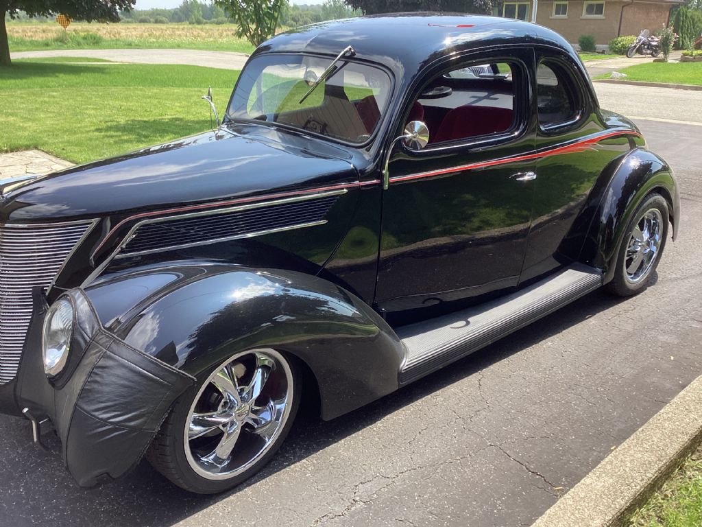 ![]() Click on the image for a larger picture. 1937 FORD HENRY FORD STEEL 5 WINDOW - SOLD! COUPE SOLD! You can’t build one for this price! Well built, smooth ride, 1937 Ford 5 Window Coupe, All Steel body, steel front fenders, fiberglass rear fenders. Black with pin stripe and design, new glass, locking gas cap, bra, shows very well! Powered by a 350 cu. in., automatic 350 turbo, dual exhaust, mini starter, XS Power 12V power cell, dual fan controller, Walker Rad, Camaro rear end with leaf springs, Camaro front clip, front disc brakes, drum on rear, chrome 17” Foose Wheels with new tires 215 /55R17, chrome column, Billet Specialties steering wheel, new Auto Meter guages, air conditioning, stereo, red & black interior, bench seat with arm rest, finished trunk interior, power windows, power brakes, power steering. Asking $69,500.00 CND or $52,000.00 US. Located near Buffalo, N.Y. In Canada. Will help arrange shipping door to door in enclosed hauler. Listed for a fellow car enthusiast. No trades!