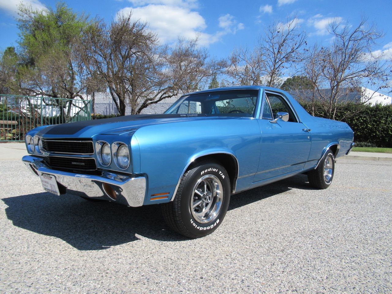 ![]() Click on the image for a larger picture. 1970 CHEVROLET EL CAMINO A sweet El Camino loaded with options! This beautiful Astro Blue Metallic truck has a fresh 350 HO GM Performance crate motor rated at 330 Horsepower and comes complete with Chrome accessories, Aluminum intake, Holley carburetor, HEI ignition, serpentine belt system, Hedman Headers with duel exhaust, power steering, power disc brakes, Cold A/C, 200R4 automatic overdrive transmission with trans cooler and backed by a 10 bolt rear differential. The exterior is finished off with a functional Cowl Induction Hood, original style Super Sport wheels wrapped in BF Goodrich T/A radials with raised white letters. The interior is super comfortable and finished in Blue vinyl with cloth inserts, head rest bench seat, tilt steering column, factory tachometer, original steering wheel, Custom Auto Sound stereo with Bluetooth connect and a set of kick panel speakers to play your favorite tunes. This original Los Angeles built Classic hauler comes with some original purchase documents and a stack of records and receipts to hang on to. If you don’t have time to fix one up, this is one you can drive and enjoy today!