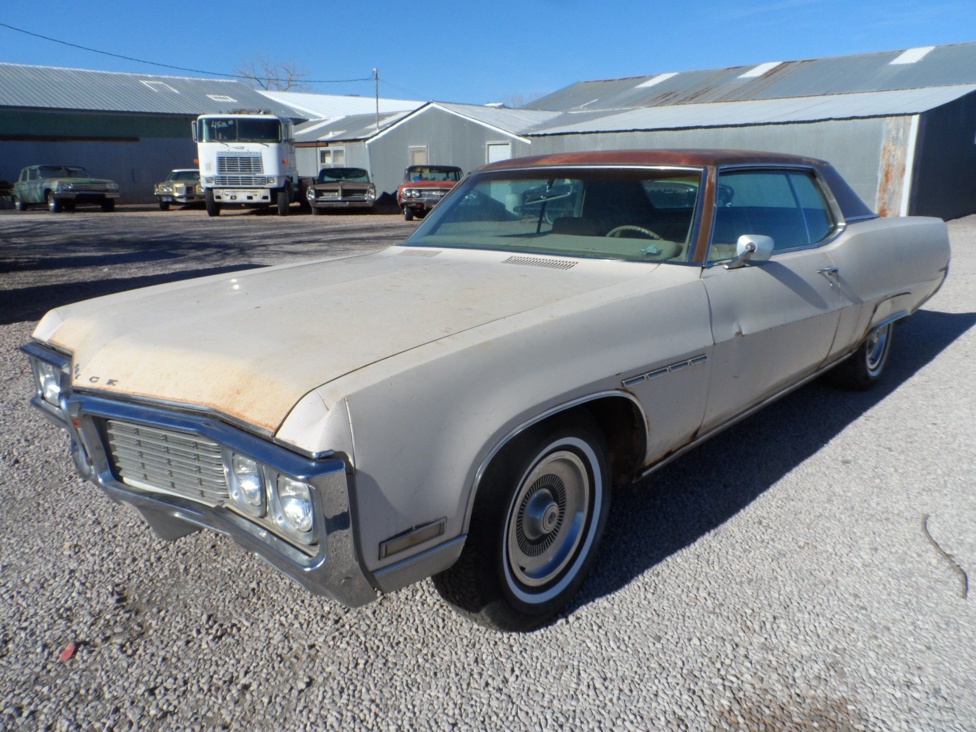 SORRY, WE JUST SOLD THIS VEHICLE. Keep Watching Our Website, As Our Inventory Changes All The Time! RARE! 1970 Buick Electra 2 Door Hardtop. This Big Buick is a really neat car. It is 99% complete, and is totally original. Has never been wrecked, repainted, or bondoed up. Great To Restore This Big Car! Has original paint and is in need of restoration, as it is now in fairly poor condition. Has some Minor Rust out in areas, you can see in the photos. Has solid floors. Has some extra parts in the trunk, and even has the original wheels, hubcaps, and spare tire. Has a nice front clip, good grille and bumpers. Interior is complete, but now is in poor condition, from sitting outside too long. BUT, INTERIOR IS NOT MOUSE EATEN . Just a victim of old age. Windshield has a crack, but rest of the glass is good. Has the RARE Big 455 V8, with an automatic transmission. Motor will run, but has a slight miss. I did move the car forward and backwards, BUT HAVE NOT DRIVEN IT, SO IT IS NOT A DRIVER. The brakes have bled down, from sitting, and you will need to do some TLC on the brakes. We do have the ignition key, but for some reason the trunk lock and key are missing. Price is ONLY $3,200 for this Big Old Buick Electra, and Comes With a Clear South Dakota Title. PLUS WE DON'T CHARGE YOU A TITLE FEE EITHER. Don't miss this jewel in the rough. For more information, Call Bill at Motion Unlimited Museum and Classic Car Lot. Rapid City, South Dakota 605-348-7373.