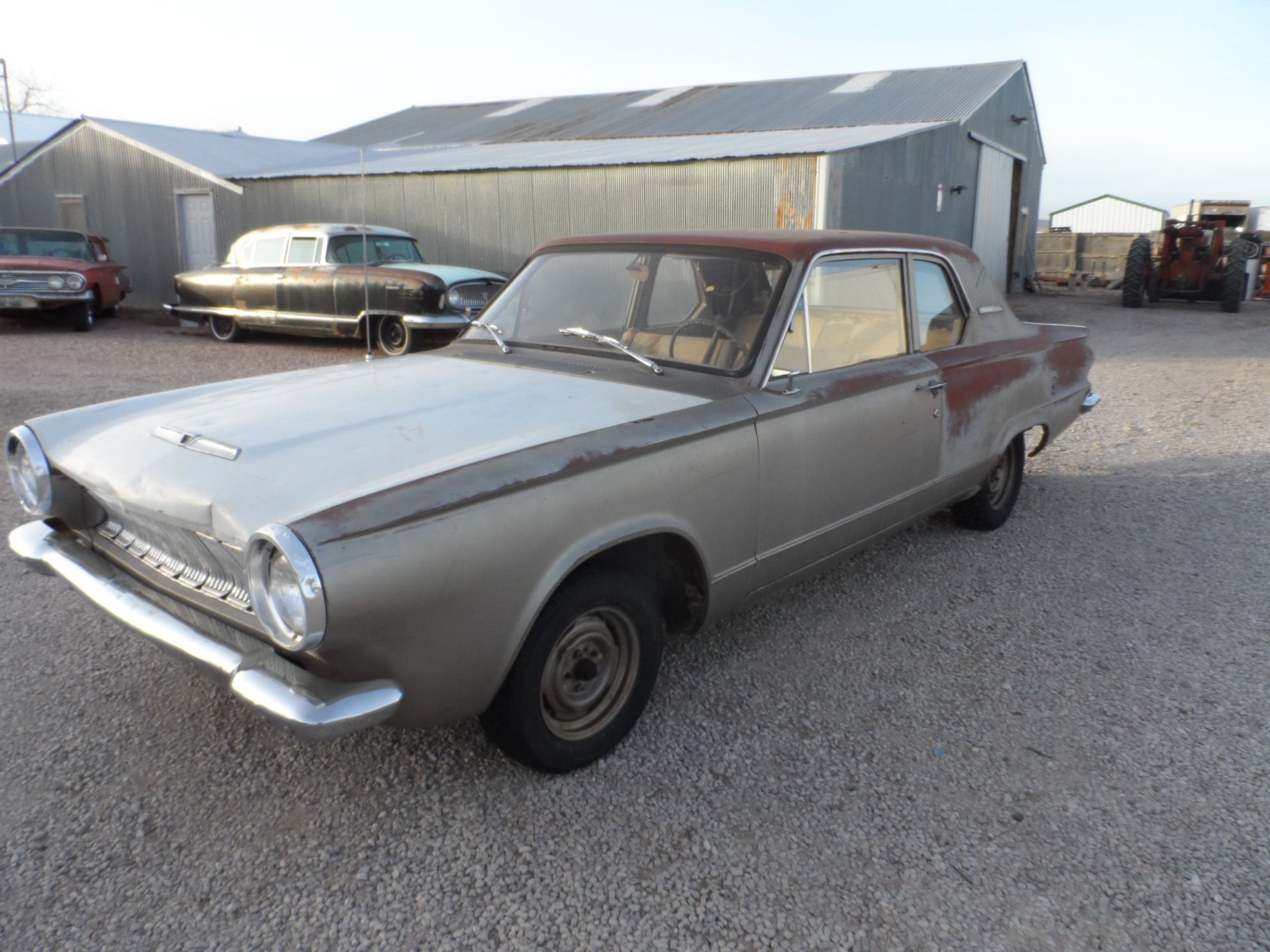 SORRY THIS VEHICLE HAS BEEN SOLD! Keep Watching our website, as our inventory changes often. NOW ONLY $2,500 WAS $3,000. Use the Savings Towards Your Shipping Cost. 1963 Dodge Dart 170, 2 Door. Now this is a very cool Gasser Candidate. Has a really nice body, with some minor rust out. Also has some minor hail dings and dents. This car is pretty complete, but is missing the correct tail lights and battery. There are some Dodge tail lights in the trunk, but maybe you can trade them for the correct tail lights. The interior is nearly complete and a little tired out. Missing the dash top vent pieces, (you can see in the photos). Notice the factory radio. Shows 60K on odometer, but can not verify that mileage. Windshield is cracked, but rest of glass is not cracked. Do Not Have Keys. The slant 6 motor is stuck, and has an automatic transmission. This is one of those odd Dodge's that really attract attention where ever you go. People just don't see these cars. YES, YOU WILL GET A CLEAR SOUTH DAKOTA TITLE, AND WE DO NOT CHARGE YOU ANY ADDITIONAL TITLE FEES. Look the photos over carefully. This little car is worth every penny. Price is NOW ONLY $2,500 WAS $3,000. Call Bill @ Motion Unlimited Classic Cars and Museum, Rapid City, South Dakota for more info. 605-348-7373.