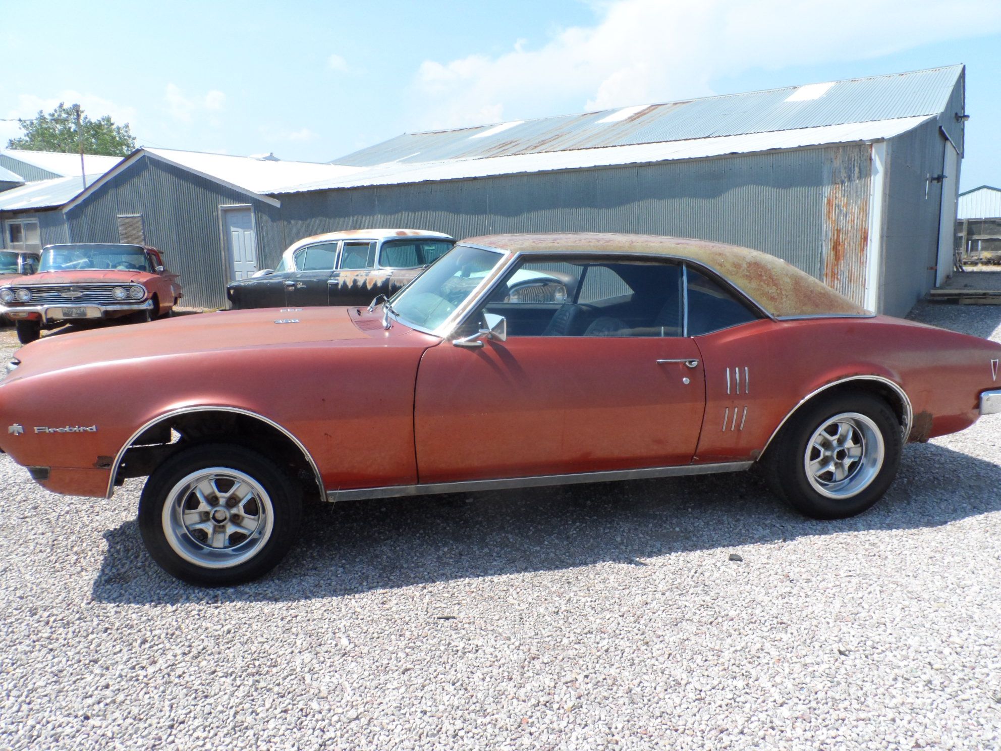 ![]() Click on the image for a larger picture. 1968 PONTIAC FIREBIRD COUPE SORRY, THIS VEHICLE HAS BEEN SOLD. Please Keep Watching Our Website, As Our Inventory Is Always Changing! Rare 1968 Pontiac Firebird. Comes with Clear Title! I do not need to tell you how hard these early Firebirds are to find. This car is a great project to restore your way. The really good thing about this car is aside from missing the engine, (we did find a tranny that will come with this car). The car Has Not been butchered, stripped, or modified. The car is a 350 model, with factory hood badges. It is missing the radio, radiator, and a few other small pieces. The engine compartment has not been cut up either. The windshield is cracked, but the rest of the glass is good. Has THE ORIGINAL BUCKET AND REAR SEAT. Even the keys are still in the ignition. Heater control unit is in the car. Has Pontiac wheels, that we think may be correct. The body does have a little hail damage, and some minor rust out around the rear wheel wells, which will be easy to repair. The floors and trunk are not rusted. The rest of the body is solid too. The front bumper has a little bend in it. Note: all the name badges are intact. Of course the Paint is poor, and did have a vinyl top, but as you can see it has been taken off. Price is $7,500 firm, and YES YOU WILL GET A CLEAR SOUTH DAKOTA TITLE, AND NO EXTRA TITLE FEES EITHER. Shipping is available worldwide. For more information, Call Bill @ Motion Unlimited Classic Cars and Museum, Rapid City, South Dakota. 605-348-7373 AutaBuy sold this car to a buyer in Missouri. A VERY HAPPY CUSTOMER! Said he had been searching for a car like this one, for years, that wasn't all apart, modified, or completely rusted out.