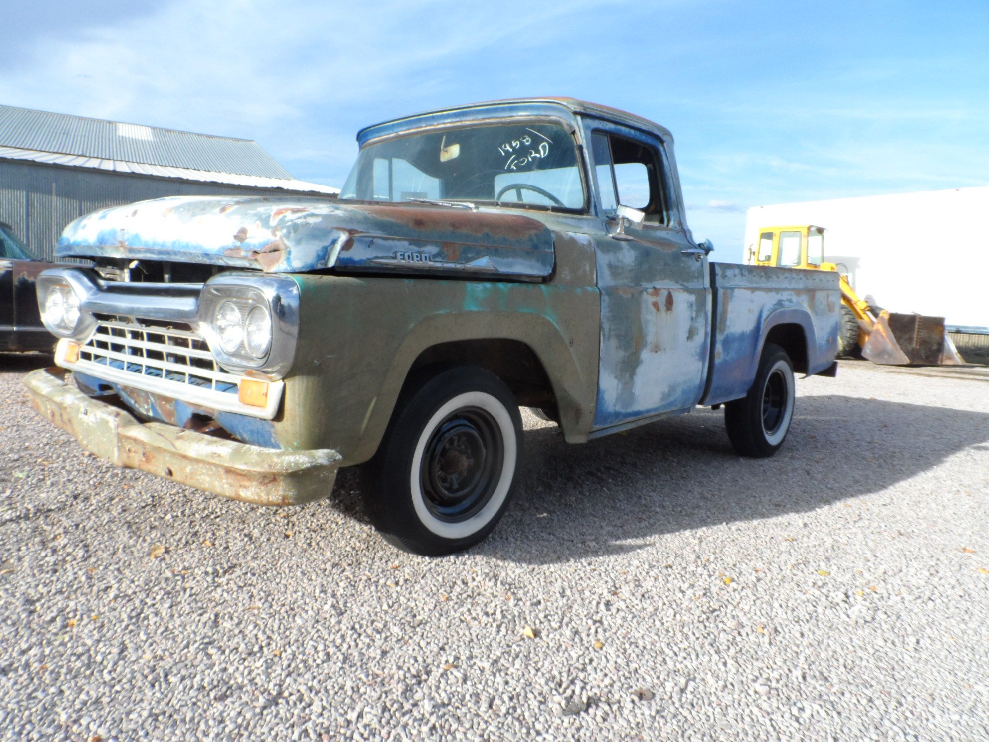 ![]() Click on the image for a larger picture. 1958 FORD F-100 SHORT BOX 1/2 TON THIS PICKUP HAS BEEN SOLD! Keep watching our website, our inventory changes all the time. NOW ONLY $2,800 WAS $3,500. USE THIS HUGE SAVINGS TOWARDS YOUR SHIPPING, which is running $1.00 per mile 1 way for now. 1958 Ford F100 1/2 ton short box Pickup. This is your next Kool Project! Truck is 99% complete, 292V8 (stuck). 4 spd. Original running gear. Very clean old pickup. Has very few dents or rust out. rust out is mainly confined in the front cab mounts. the doors open and close fine. Has a nice chromed 60 Ford Grille. Hood has a bit of damage, and doesn't fit well. Very good box with virtually no rust out. Has cracked windshield. Original seat and dash. Set is in poor condition. If you are looking for a neat little affordable pickup to build, he is your truck. Comes with a Clear South Dakota Title, and None of Those Sneaky Extra Title Fees Either. Truck will come with different wheels and tires than the ones you see in these photos. Truck will be a roller. PRICE IS RIGHT AT ONLY $2,800, WAS $3,500. Shipping is available. Call Bill @ Motion Unlimited Classic Cars and Museum, Rapid City, South Dakota, 605-348-7373.
