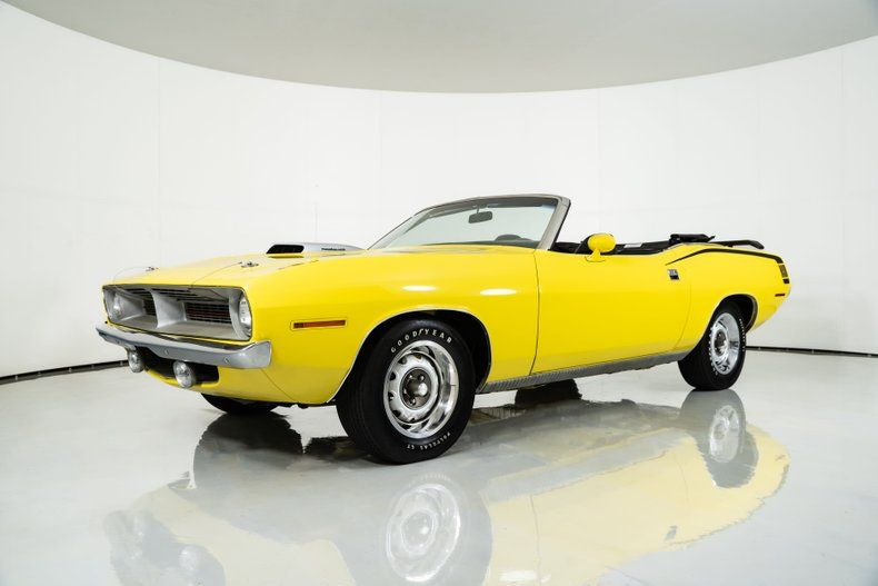 Finished in eye-catching Lemon Twist Yellow, this Cuda features a power-operated black soft top for open-air cruising. Inside, black vinyl bucket seats, a center console with a Pistol Grip shifter, and power steering create the perfect mix of performance and comfort. Power front disc brakes ensure confident stopping power, while 15-inch Mopar Rally wheels wrapped in period-correct Goodyear F60-15 tires complete the classic muscle car stance.