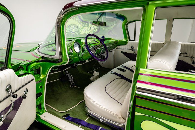 Long and Low, the Wagon is slammed to the ground and features a K-Daddy paint job that won't soon be forgotten. Every square inch of this Wagon has been customized. From the killer custom upholstered interior to the custom-built 409 beast of an engine, and a full AccuAir air bag suspension setup, the Bandito's wagon is not just the average "surf's up" California cruiser.