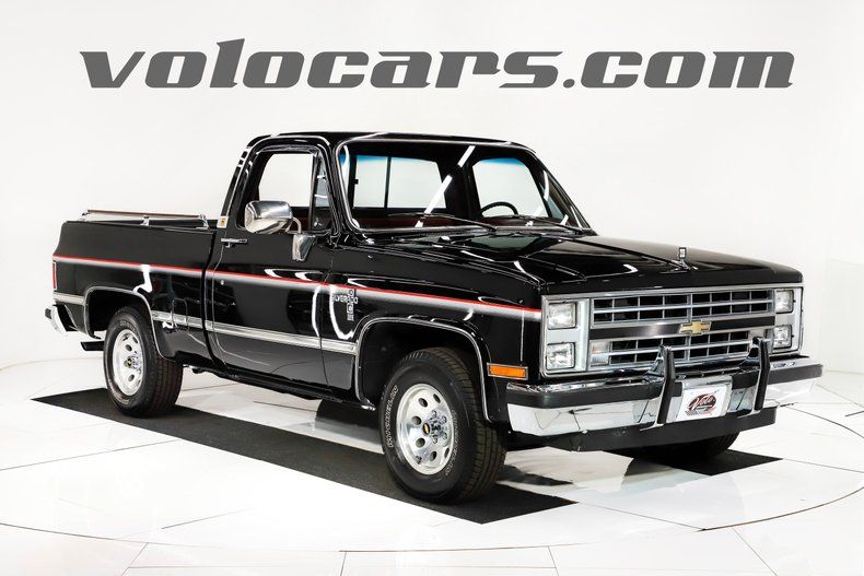 INTERIOR: It's a time capsule in here too, practically brand new still. The red looks great against the black. Being a Silverado, it has top of the line features. The cloth seat doesn't have a snag, the door panels, carpet, and headliner are mint. The dash area is pristine including the chrome vents, knobs, gauges, and heater control panel. The steering wheel has no wear, ashtray wasn't used, the option sticker is still on the glovebox door. It is optioned with the factory cassette stereo, tilt wheel, cruise control power windows and locks.