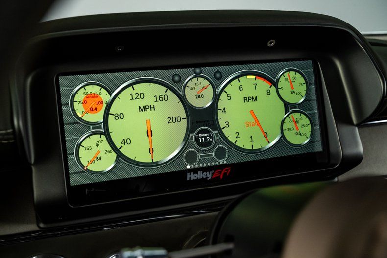 Inside, the custom leather green bench seat interior is a true work of craftsmanship, marrying classic style with modern luxury. A Holley digital touchscreen dash keeps you in control of every performance setting, while the in-dash selectable engine tune allows you to fine-tune your driving experience at the touch of a button. With features like push-button start, power windows, and a custom upholstered trunk complete with hand-fabricated subwoofer enclosures and dual hidden batteries, this car offers the ultimate in both luxury and performance.