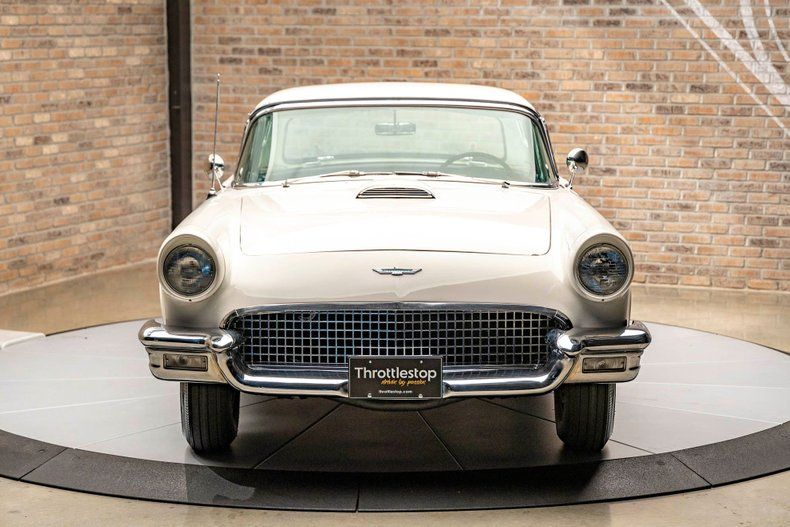 Introducing a rare opportunity to own an automotive legend: this 1957 Ford Thunderbird E-Code, finished in iconic Colonial White. Highly collectible and one of only 1,363 E-Birds produced, this example represents the pinnacle of Thunderbird performance with its special 312ci dual quad carburetor setup, delivering a powerful 270 horsepower. Paired with a smooth Ford-O-Matic automatic transmission, this car embodies timeless sophistication and thrilling performance.