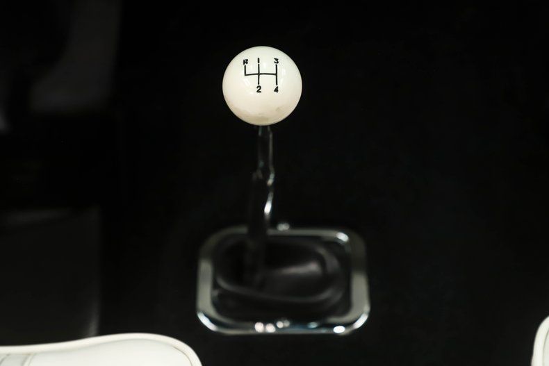 INTERIOR: Double amazing! Factory white against the amazing factory blue paint! The door latch assemblies, weatherstrips, and sill plates have been replaced. The jambs are painted slick, just like the body. Everything looks new including the door panels, armrests, handles, cranks, and trim. All the metal inside has been neatly repainted and the optional dash pad was replaced. The machine turned gauge bezel is just so beautiful to look at. The gauges all look fresh and there is only 19 miles on the odometer since completion. Even the climate controls and radio are spotless. The glove box liner, sun visors and headliner were all replaced. The bucket seats have been reupholstered and the back seat was redone in matching vinyl. The kick panels and carpeting were replaced, plus it has reproduction floor mats. Also down on the floor is some deluxe seatbelts for the front passengers. It came from the factory with a tachometer, 4 speed shifter, and deluxe 4 spoke steering wheel. All the interior lights and dome light are working.