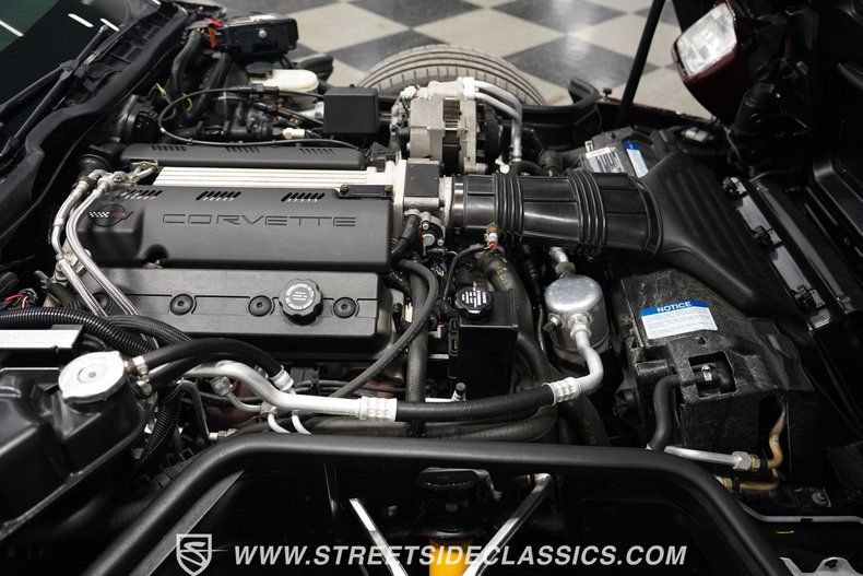 Rare and exclusive, the 1993 Chevrolet Corvette 40th Anniversary appears before you in its factory Ruby Red Metallic finish - one of only about 4,500 anniversary coupes produced. The astonishing odometer reading of just 21,607 miles translates to an average of less than 700 miles driven per year over its 32-year lifespan. The unmistakable Corvette profile is complemented by factory 17" sawblade wheels wrapped in Continental rubber (255/45ZR17 front, 285/40ZR17 rear) that create an aggressive stance. With a removable targa top for open-air cruising and virtually time-capsule-level preservation, this anniversary edition maintains its factory appearance exactly as it rolled off the assembly line.