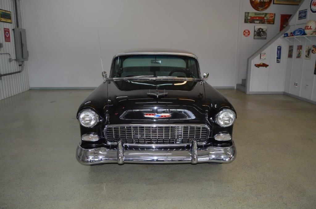 This is a very nice 1955 Bel Air Hardtop for sale. The two-toned black and silver paint is blended very well over a slick body with reconditioned moldings. All of the chrome and trim looks great!