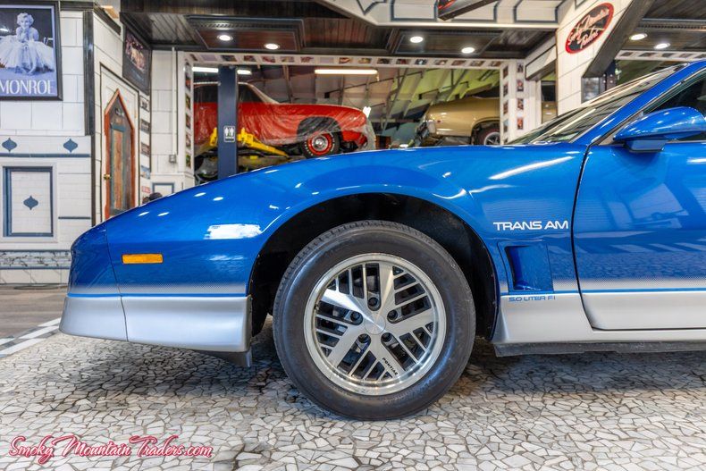 We will start with the exterior of this Trans AM. It is a factory WS6 optioned car in the original Bright Blue Metallic Paint with Silver accents down low. All the panels fit just as nicely as when it came off the showroom. It shows no signs of abuse from over the years and still has the original glass. Both doors, the hood, and the rear latch open and close easily. We can see the bumpers, both front and rear, are in excellent condition. To finish off the exterior, it's sitting on the 16" Pontiac Wheels.