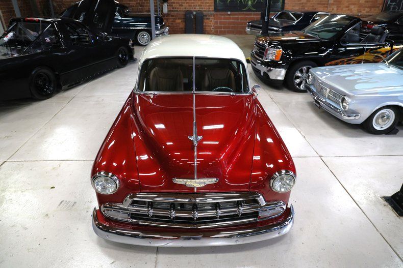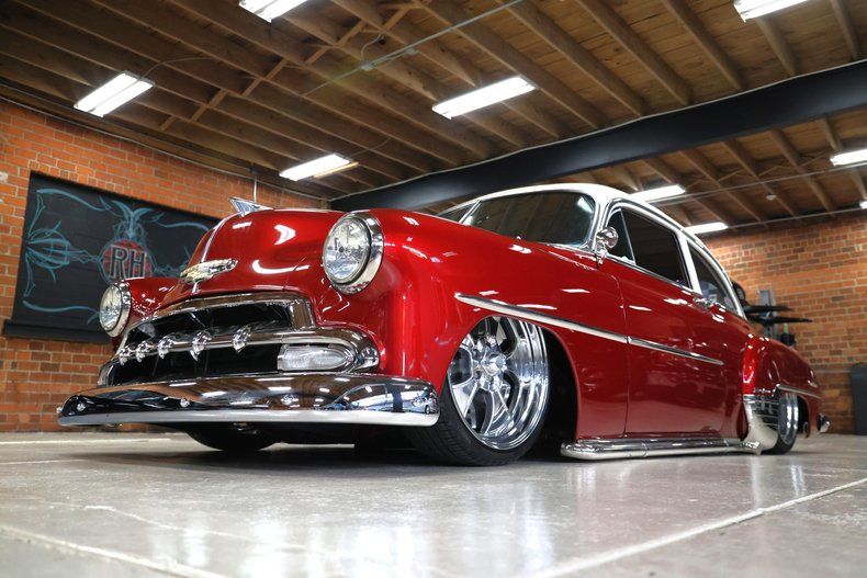 Introducing a stunning hand-built custom 1952 Chevrolet Styleline Deluxe that exemplifies the pinnacle of automotive craftsmanship and performance. This extraordinary creation features a meticulously constructed chassis that allows the vehicle's rocker panels to lay flat against the ground, achieving a striking stance. The Air Ride suspension is equipped with dual 444 Viair compressors and dual 5-gallon air tanks, paired with SMC valves and an AVS switch box that includes air gauges conveniently located in the console.