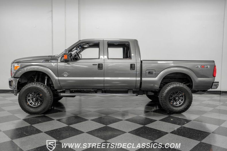 Trail-blazing across America's rugged landscape, this 2011 Ford F-250 XLT Super Duty 4x4 dominates with its aggressive lift. Coated in Sterling Gray Metallic paint that reflects the rugged determination of its character, this F-250 displays American flag emblems that speak to its hard-working domestic heritage. Muscular 18" Fuel wheels anchor each corner, gripping the earth with massive 37x12.50R18 Toyo tires that are ready for any adventure. The Xtreme Liners bedliner stands guard against the elements while the functional tailgate step and extendable trailering mirrors prove this truck was built for serious outdoor missions.