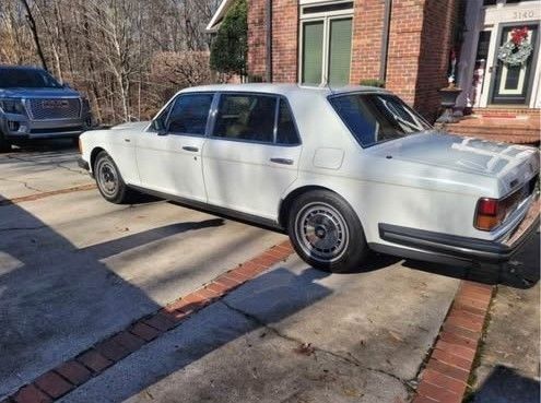 This 1995 Rolls-Royce Silver Dawn is an exceptionally well-preserved luxury sedan, featuring an ultra-low 18,385 miles and a meticulously maintained, climate-controlled history. The white exterior paint is in near-perfect 9.5/10 condition, while the tan leather interior is flawless at 10/10, complete with original factory Lamb floor mats.