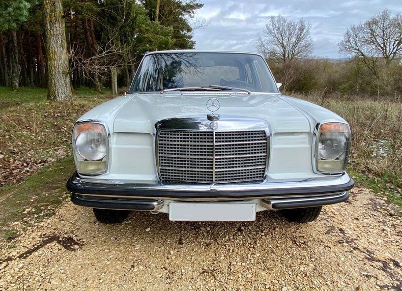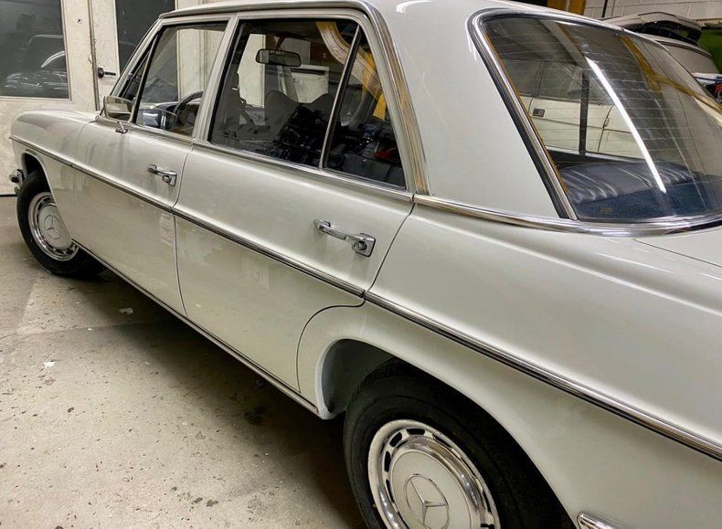This 1972 Mercedes-Benz 280E is in mint condition, showcasing its well-preserved white exterior and blue interior. It has been meticulously cared for, with no mechanical or electrical issues, ensuring a smooth and reliable drive. The vehicle's classic luxury sedan styling makes it a standout among vintage Mercedes models, maintaining its original elegance and comfort.