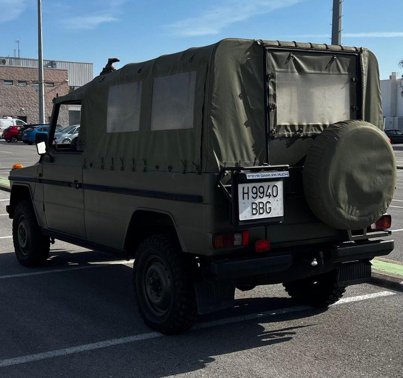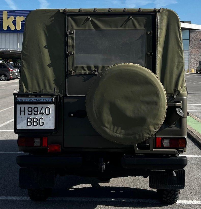 The green exterior and matching green interior maintain the vehicle's original military aesthetic, making this Puch G 300 a true piece of automotive history.