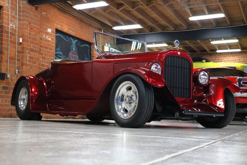 This remarkable build features a custom firewall and hand-fabricated running boards, highlighting the meticulous craftsmanship that went into its creation. It includes a bespoke front splash apron and uniquely designed bumpers, with the rear bumper constructed from solid stainless steel for both durability and sophistication. The windshield frame has been modified to achieve a more aerodynamic silhouette for the roadster.