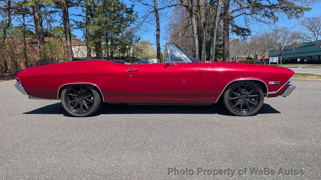 1968 Chevrolet Chevelle SS Pro-Touring Convertible For Sale Just Finished a 3.5 Year Long Frame-Off Restoration with ONLY 235 Miles Lots of LS3 Power on Tap Makes It an Absolute Joy to Drive Looks Absolutely Incredible Inside and Out and Loaded With Great Features Chevy Fuel Injected LS3 Performance Engine with Push Button Start THM 700R4 4-Speed Automatic Transmission Vintage Air Conditioning Serpentine Pulley Setup Aluminum Radiator Paired With Derale Performance Dual Electric Cooling Fans Doug's Ceramic Coated Headers Leading to 3 Mandrel Bent Dual Exhaust System with Black Widow Mufflers, That Throaty Sound is INSANE! Clean Engine Bay Looks Incredible With the Smoothed Firewall Power Steering Wilwood Hydroboost and Power Disc Brakes With Drilled and Slotted Rotors on All Four Corners 12 Bolt Rear End With 3.73 Gears 4-link Rear Suspension With Reinforced Control Arms and a Sway Bar Signature Custom Forged Black Chrome Rims(Nittos 285/35 ZR20 Rear / 245/35 ZR20 Front) Custom Red Pearl Paint With Black Canvas Power Convertible Top New Chrome Bumpers All Polished Trim Led Rear Tail Lights, High Intensity Headlights with Red LED Halo Ring and LED Interior Lighting Beautiful Brand New Black Leather TMI Buckets With Red Contrast Stitching Custom Center Console with Cup Holders Seat Belts All Around 3 Spoke Steering Wheel with a Tilt Steering Column Dakota Digital Gauges Retro Sound System with Bluetooth, USB, AUX, Alpine Speakers, Amps and Sub Woofer New Black Carpeting and Rubber Floor Mats Nicely Refinished Trunk With Battery Undercarriage Looks Great and It's No Exception to the High Quality of Work That's Seen Up Top This Chevelle is New, New...Frame, Floors, Pinch Welds, Rocker Panels, Fuel Tank, Lines, Stainless Steel Brake Lines, Complete Drivetrain, Steering Components, Bushing, Weather Stripping, Glass Etc.. No Expense Spared! For Sale by Owner Located in Ronkonkoma, NY 11779 Follow This Link To TONS of High Resolution Photos: https://photos.app.goo.gl/piwZfDvv24Aa B11w8 Take A L@@K At The Video On YouTube: https://youtu.be/kdbdBjr6neo WeBe Autos Specializes in Marketing and Advertising Muscle, Classic, Vintage and Specialty Cars. We offer Professional Photography, HD Movies, and Staging that Sells Cars. Let us showcase and sell your specialty car. Please visit our website for more details. Keep in Touch, Michael Runnalls Specialty Car Marketing & Media WeBe Autos Ltd. Long Island, NY 11780 Michael@WeBeAutos.com www.WeBeAutos.com (O)631-339-0399 (C)516-729-2003 Skype: webeautos (F)631-389-2605 - - - Contact Michael Runnalls at 631-339-0399 or Michael@WeBeAutos.com for more information. -