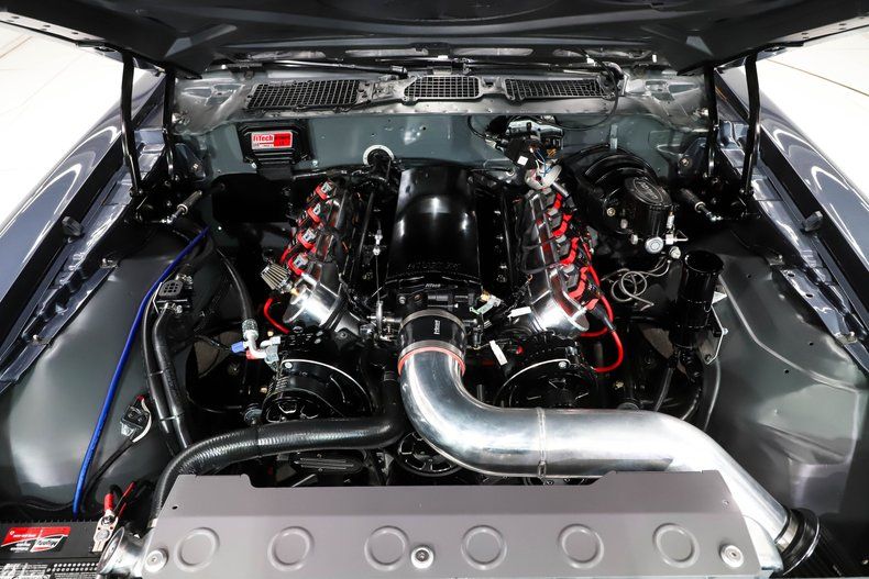 ENGINE COMPARTMENT: 378 cubic inch 430 horsepower LS3! A FiTech fuel injection system was added for turnkey reliability. It is also equipped with air conditioning, power steering, and power brakes with proportioning valve. The power steering gear box was upgraded with a CPP unit. The radiator was also upgraded with a large aluminum unit that has dual electric fans. A serpentine drive system with custom pulleys and brackets really cleans up and dresses up the bay nicely. The wiper motor was replaced. The hood hinges were upgraded with billet units that have a strut assist. The original cowl tag is in place. The underside of the hood, fenderwells, and firewall are all neatly painted satin grey.