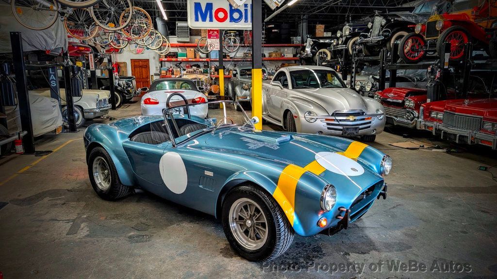 1964 Shelby CSX7952 Cobra 50th Anniversary FIA Limited Edition For Sale Just Built With Less Than 1 Mile ~ Literally Brand New and Sold on MSO For the 1st Owner CSX7952 Finished in Fiberglass Number 3 of 50 Produced ~ The Real Deal 50th Anniversary FIA Limited Edition Option was an Additional $10,000 From Shelby This is The Most Decorated Cobra Ever Built ~ Painted in the Team Color, Viking Blue with Arctic White Roundels (Meatballs) and Yellow Transverse Nose Team Stripe Brand New BOSS 302/340hp Crate Motor BOSS 4-Bolt Main Block M-6010-BOSS302 TKO 600 5 Speed Manual Transmission Custom Holley Carburetor 9.0:1 Compression Ratio Forged Pistons Forged Steel Connecting Rods Roller Rocker Arms Hydraulic Roller Camshaft M-6250-E303 498 Lift Intake and Exhaust, Duration at .050 is 220 Degrees Double Roller Timing Chain Set M-6268-A302 Forged Steel Crankshaft Ford Performance Aluminum M-6049-X2 Cylinder Heads All Stainless Steel Fittings Shelby Racing 4 Piston Disc Brakes Original Style Aluminum Pin Drive 15 Wheels Shelby Knock-Off Rims Rack and Pinion Steering Big Aluminum Radiator With Electric Fan Differential Oil Cooler System Shelby Suspension With Transverse Leaf Spring Front & Rear Shelby Salisbury Differential 3.54 Side Exhaust system Shelby Frame 3 DOM Frame 18 Gallon Stainless Steel Fuel Tank with Fuel Level Gauge and Sending Unit 50th Anniversary Badges Side View Mirror Brake Air Scoops Fresh Air Vents Side Wind Visors Black Quick Jacks FIA Style Roll Bar Aluminum Cockpit Interior With Special Interior Package Vinyl Seats & Dash Dash Plaque Shelby Gauges 15 Shelby Wood Steering Wheel with 50th Anniversary Crest Custom Black Carpeting Including Back of Seats Door Map Pockets 50th Anniversary Floor Mats and Trunk Mats For Sale By Dealer and Located In West Babylon, NY 11704 Take A L@@K At The Video On YouTube: https://youtu.be/B-ggEjlVYLw Follow This Link To 225 High Resolution Photos: https://photos.app.goo.gl/JSehVzxFpMSQ UfA89 WeBe Autos Specializes in Marketing and Advertising Muscle, Classic, Vintage and Specialty Cars. We offer Professional Photography, HD Movies, and Staging that Sells Cars. Let us showcase and sell your specialty car. Please visit our website for more details. Keep in Touch, Michael Runnalls Specialty Car Marketing & Media WeBe Autos Ltd. Long Island, NY 11780 Michael@WeBeAutos.com www.WeBeAutos.com (O)631-339-0399 (C)516-729-2003 Skype: webeautos (F)631-389-2605 - - Leather Interior Surface - Contact Michael Runnalls at 631-339-0399 or Michael@WeBeAutos.com for more information. -