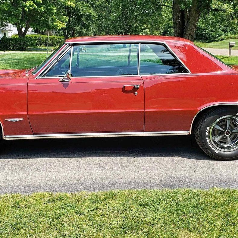 This 1965 Pontiac GTO Coupe is a PHS-documented, numbers-matching, body-off restored muscle car classic that is over 95% original. It's powered by a 389 CI V8 with a 4-barrel carburetor, mated to a factory 4-speed manual transmission, offering an authentic and powerful driving experience.