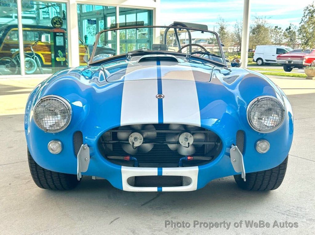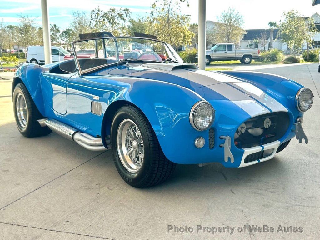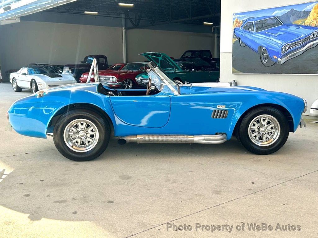 1965 Ford Shelby Unique Motorworks 427 Factory Built By Unique Motorcars For Sale Titled as a 1965 Ford Shelby Unique Motorworks 427 Cubic Inch Stroked to a 462 Cubic Inch Performance Engine Aluminum Intake Performance Carburetor Ford Cobra Aluminum Valve Covers Aftermarket Spark Plug Wires Open Element Air Cleaner Exhaust Headers Leading Out to Side-pipes External Oil Filters Ford T-10 4 Speed Transmission 3.55 Posi Rear End Wilwood Disc Brakes Jaguar Independent Rear Suspension Custom Frame Tubular A-Arms External Oil Filters Carrera Adjustable Coil Overs Black Leather Bucket Seats Center Tunnel Black Door Panels Full Complement of Stewart Warner Gauges Wood/Polished Sport Steering Wheel Simpson Racing Seat Belts Single Loop Chrome Roll Bar Floor Shifter Black Carpet Unique Cobra Floor Mats Ford Grabber Blue Paint With Painted White Stripes Covering the Iconic Cobra Body Flared Fenders Shelby Hood Scoop, Side Vents, Chrome Trim Chrome Front and Rear Racing Bumper/hooks 427 Shelby Cobra Badging LED Tail Lights Correct Cobra Windshield With Correct Wing Glass Snap on Cockpit Cover Moroso Kill Switch Compumotive Wheels Black Sidewall Fat Tires All Around The owner states it cost over $150,000 to build this Shelby street machine This 1965 Ford Shelby Unique Motorworks is powered by a high-performance Ford 427 cubic inch performance engine that has been stroked to 462 cubes. It has many go-fast goodies including an aluminum intake, Holley performance carb, Ford Cobra aluminum valve covers, aftermarket spark plug wires, open element air cleaner, exhaust headers leading out to side-pipes, external oil filters, a Ford T-10 4-speed transmission, and a 3.55 posi rear end. The engine is supported by a Jaguar independent rear suspension in the custom frame with the front end having tubular A-arms, Carrera adjustable coil overs, while it rides on Compumotive wheels and black sidewall fat tires all around. Interior The interior looks brand new, and when you ease yourself down into the custom-designed black leather bucket seats, you will find that they are very comfortable for long drives, and you will never want to get out. You have plenty of legroom to stretch out your legs and will also admire the full wrap- around interior that has a center tunnel, black door panels, a full complement of Stewart Warner gauges, wood/polished sport steering wheel, Simpson racing seat belts, single loop chrome roll bar, floor shifter, black carpet, and Unique Cobra floor mats. Exterior The beautiful 1965 Ford Shelby Unique Motorworks has new Ford Grabber Blue paint with painted white stripes covering the iconic Cobra body with flared fenders that give it that aggressive stance. Other highlights include the Shelby hood scoop, side vents, chrome trim, chrome front and rear racing bumper/hooks, and 427 Shelby Cobra badging. In almost brand-new condition With its big-block Ford 462 cubic inch engine, performance chassis, and 4-speed transmission, it will give you the ride of your life and is a must-have that any collector needs in his stable to finish his collection. Located in Bradenton, FL 34212 Take A L@@K At The Video On YouTube: https://youtu.be/CX1tDImohKk?si=XOmgh7x4EX6Uu3_y WeBe Autos Specializes in Marketing and Advertising Muscle, Classic, Vintage and Specialty Cars. We offer Professional Photography, HD Movies, and Staging that Sells Cars. Let us showcase and sell your specialty car. Please visit our website for more details. Keep in Touch, Michael Runnalls Specialty Car Marketing & Media WeBe Autos Ltd. Long Island, NY 11780 Michael@WeBeAutos.com www.WeBeAutos.com (O)631-339-0399 (C)516-729-2003 Skype: webeautos (F)631-389-2605 - - - Contact Michael Runnalls at 631-339-0399 or Michael@WeBeAutos.com for more information. -