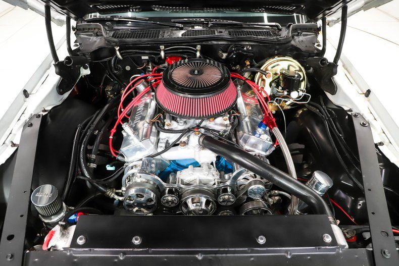 EXTERIOR: What a great looking design: the shaker hood scoop, spoilers, air extractors and the low profile this one's been given really makes it! I believe this to be a rust-free body. I've been underneath the car, it's clean right down to the rockers. It's straight and fits really nice, the big heavy doors don't sag. What a great color combination, the red/black/gray decals are awesome on the white. The paint is smooth and glossy. The grills are restored and the headlight bezels were replaced. The windshield was replaced, and the windows were tinted. It is sitting proud on custom made Billet Specialties wheels, 18s in front and 19s in back. They are wearing Nitto performance tires with massive 345s in back.
