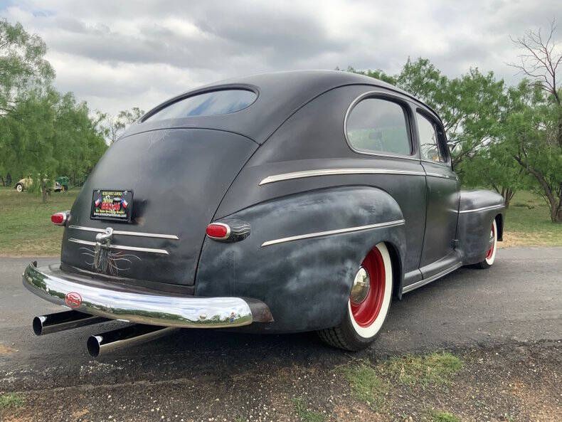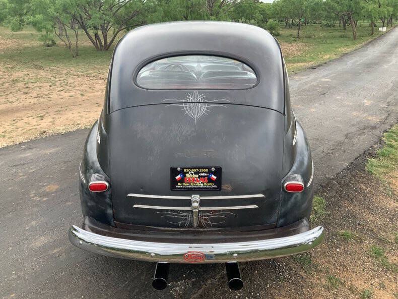 Welcome to Street Dreams as we celebrate our 26th year in the classic and muscle car business. The history of Ford Motor Company is so intertwined with American car culture that the two can seem inseparable. Whether you're talking about the 15 million model T's, the first affordable mass-produced V8 (1932 Ford), or the ubiquitous Mustang, enthusiasts will be discussing Fords for eternity. This charming 1946 Ford Deluxe Tudor retains its classic lines while bringing a bit of Southern California style to the Texas Hill Country. Lift the custom louvered hood and you'll find the venerable 327 V8 that's been fortified with an Edelbrock carburetor and aluminum intake manifold, headers, and an aluminum radiator. Additional features include power front disc brakes, an automatic transmission, awesome new wool blanket-type upholstery with grey carpet and headliner, custom pinstriping by Lil' Dickie (2015), two inch drop spindles, custom grey dash with pinstriping and Classic Instruments gauges, and Coker Classic wide whitewall radial tires (165R15 F, 215/70R16 R) wrapped around painted steelies with Ford hubcaps. The clear coated patina and wool blanket upholstery give this cruiser an amazing vibe that's cooler than the other side of the pillow. If this California cooler belongs in your garage, call the Texas Hill Country's premier source for classic cars and the team that can make your dream a reality. Street Dreams (830-997-1950) is a full service dealership that can assist with worldwide delivery, insurance, and financing options.