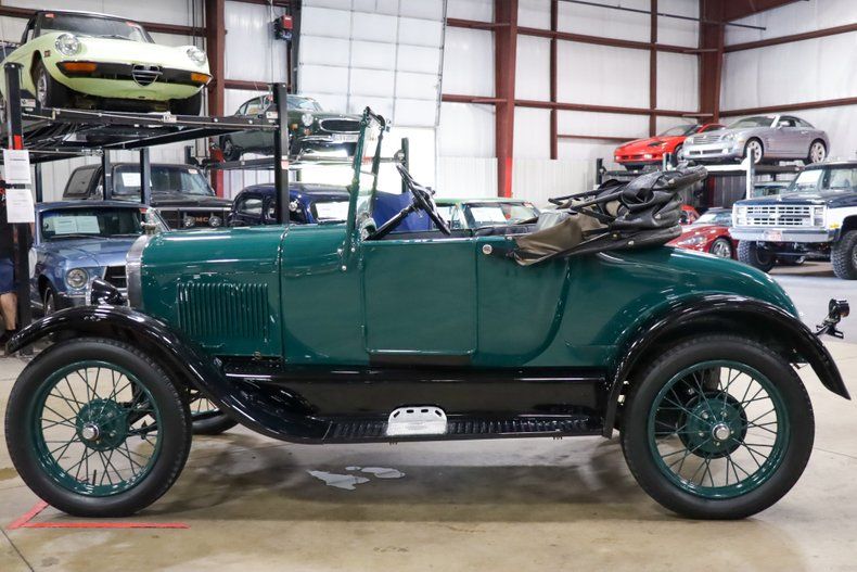 We are pleased to offer this lovely 1926 Ford Model T Roadster for consideration. This is a restored-to-spec example presented in Highland Green with Black fender belt, green spoke wheels over black interior and black convertible roof. Its 177 cubic inch 4 cylinder engine sends 20 horsepower to its rear wheels to where the car can achieve 42 miles / hr.