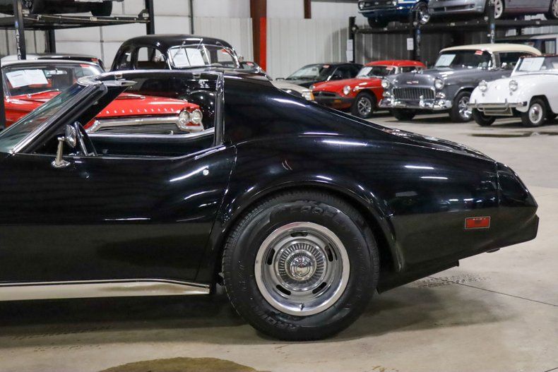 Offered here is an example that belongs to an exclusive cohort of 1975 Corvettes. Those familiar with the color options for the 1975 lineup will know that black was not an available option. Chevrolet produced a very limited quantity of Corvettes that were sent to dealers just wearing primer which allowed for the creation of brand new Corvettes finished in black. This uniqueness is denoted by the special paint code tag as shown in the pictures. This L-48 corvette features T-tops that remove and go back on the car easily and when removed make for an exciting open-top driving experience. Additional features include power steering, power brakes, and working air conditioning.