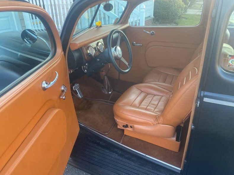 This 1940 Ford Coupe is a professionally built restomod with modern comfort and vintage style. It features a reliable 4.6L fuel-injected V8 mated to an automatic AOD transmission for smooth cruising. The Mustang II front end provides great drivability, while the matte black finish gives it a stealthy presence. Inside, you'll find a fully customized tan interior inspired by Lincoln luxury. This coupe comes with power windows, air conditioning, and a clean undercarriage. Only 1,000 miles have been driven since the restoration, and it comes with documentation from the build. Ready for cruise nights or casual weekend runs.